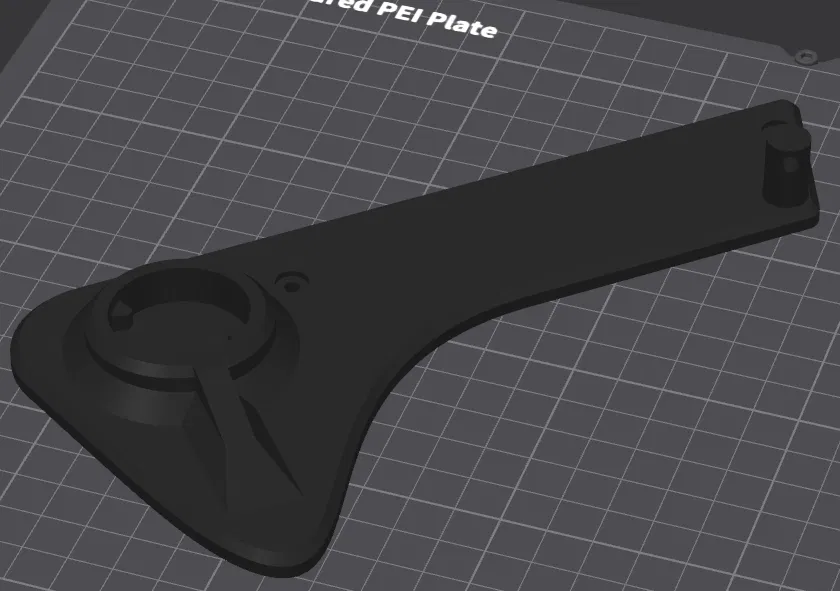 Adapter gắn hông nghiêng cho spool trên Creality K1C, có thêm phần chống đỡ để tránh bị xệ làm cuộn filament treo nghiêng. Dùng lại vít zin Creality, peg dạng “print in place”, khuyến nghị PETG CF.