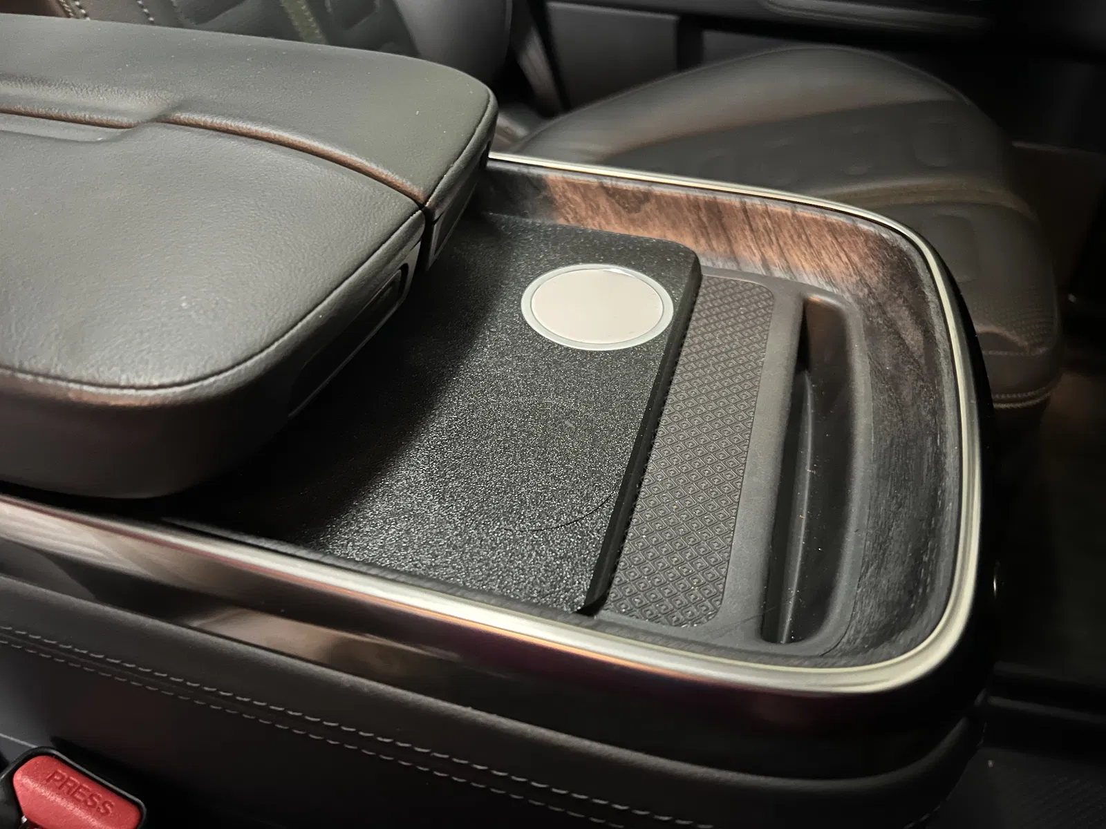 Món này là một tấm mat có thể giữ tối đa 2 pad Apple MagSafe OEM, đặt phía trên phần pad đang che bộ sạc không dây POS được tích hợp sẵn trong Center Console của Rivian R1T hoặc R1S.