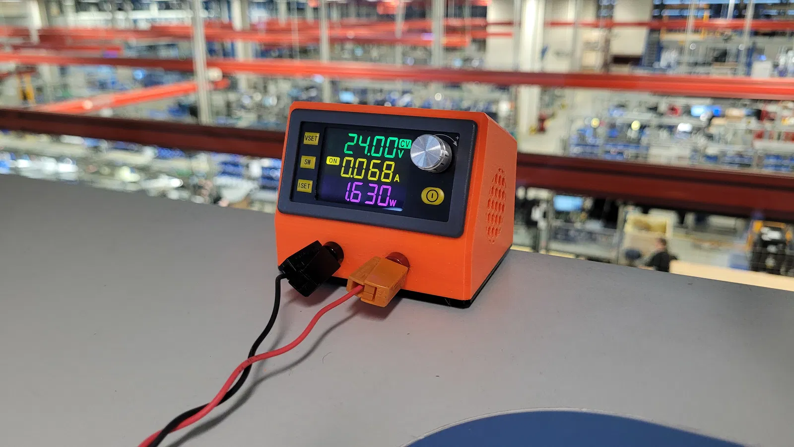 Vỏ nguồn cho SK-120 (DPS50XX), dùng được với DPS5005/DPS5015/DPS5020 và cả SK60. In bằng Prusament PETG Orange, chỉ cần organic supports cho ổ cắm mặt trước. Chân đế in 4 cái rồi dán vào đáy.