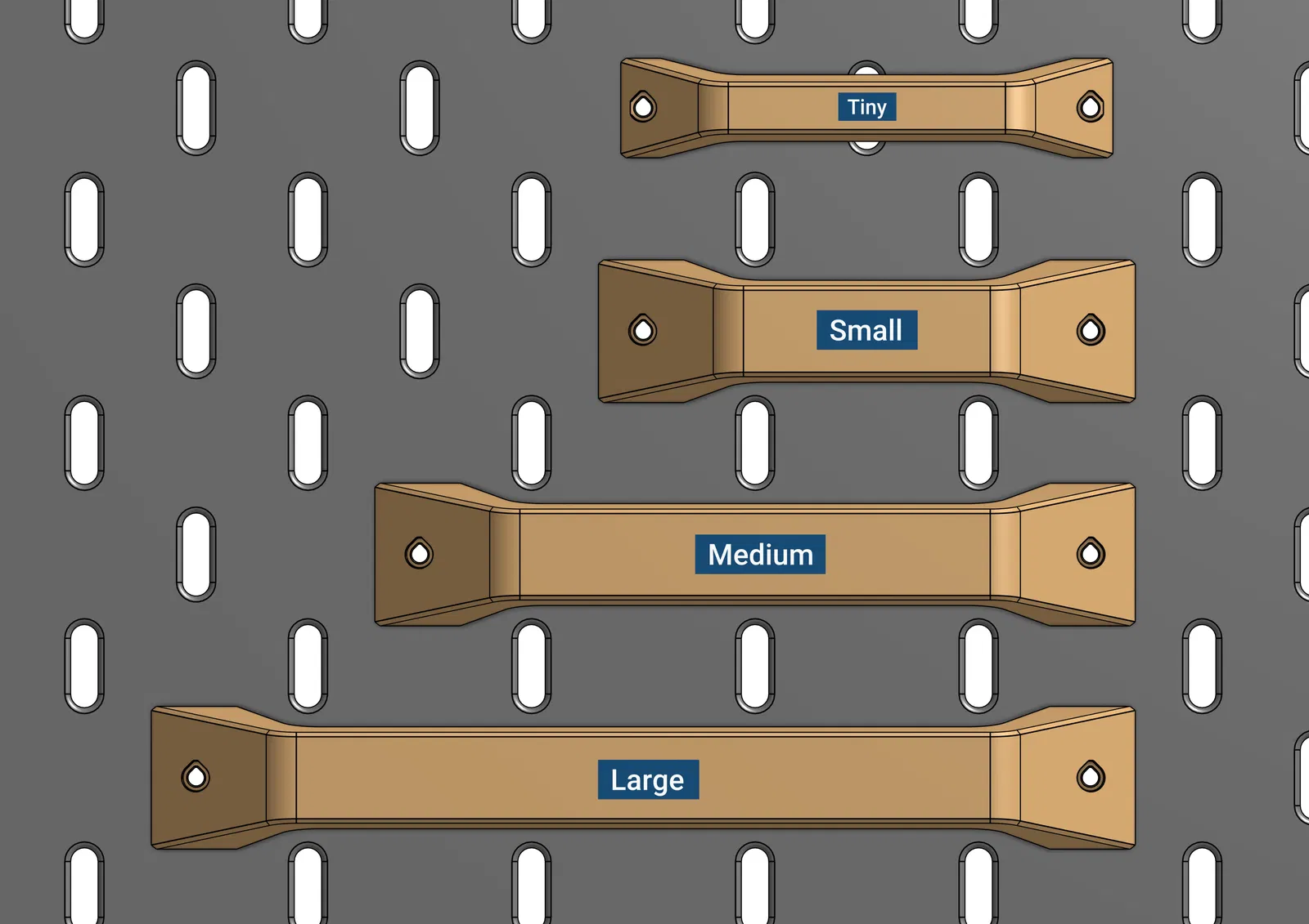 Mẫu này không dành riêng cho một mục đích cụ thể—tùy bạn tận dụng. Hình dáng rất “universal” nên dùng được cho nhiều thứ khác nhau. Rất hợp để treo những món hay dùng và chỉ cần lấy xong rồi quăng lại lên pegboard cho gọn. Bạn cũng có thể dùng nó như một tay xách.