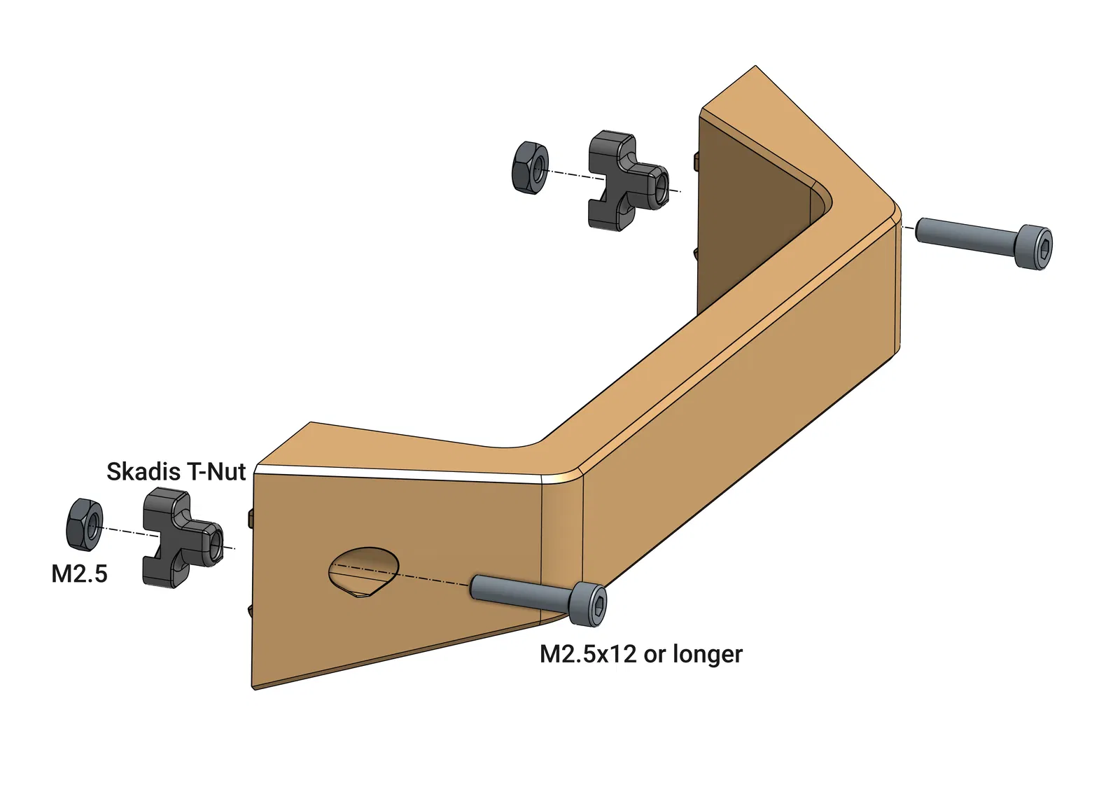 - Ấn các đai ốc lục giác M2.5 vào trong T-Nuts