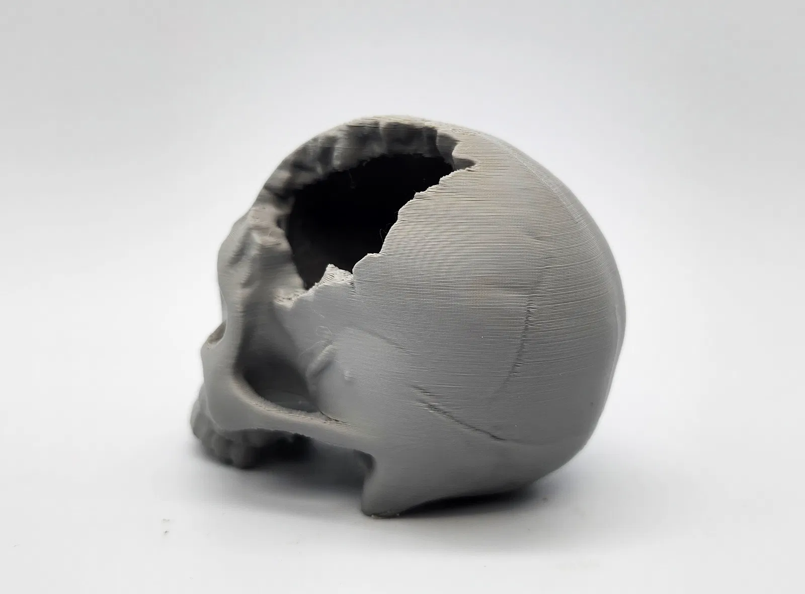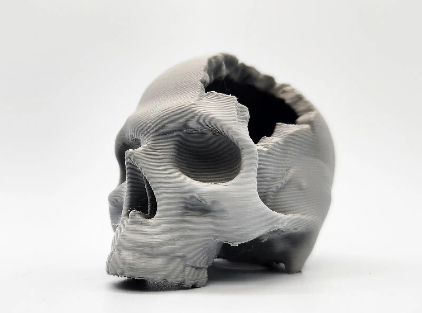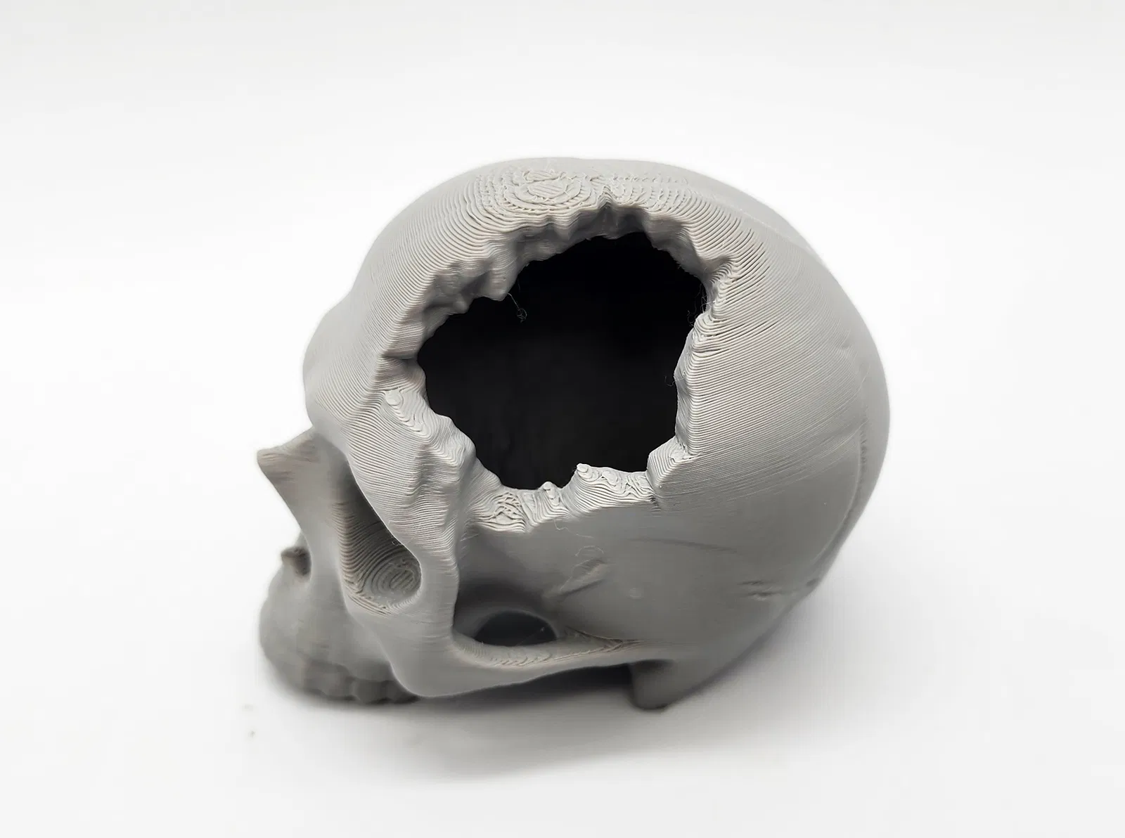 Mẫu “Major Headache Skull” có 2 phiên bản: một bản có lỗ dưới đáy để dùng tree supports chỉ trên build plate. Bạn có thể scale tuỳ ý từ mini đến kích thước thường để trưng bày.