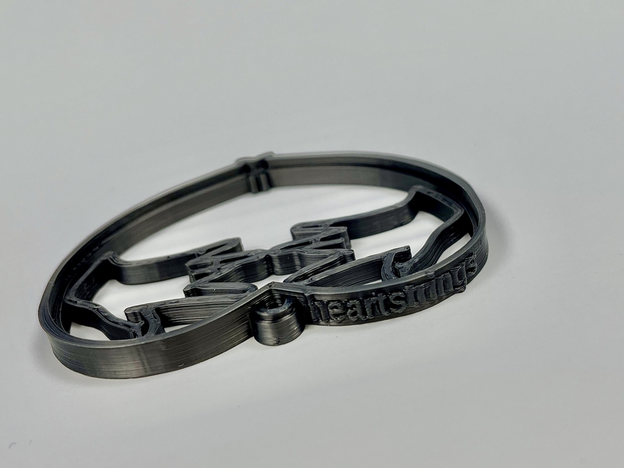 Với các hình dạng tay ở vị trí bắt đầu để vẽ một trái tim, và các mũi tên trong trái tim để chỉ hướng của tay bạn, hãy làm dấu hiệu trong ASL. Đồ trang trí cũng có từ ‘heartstrings’ ở bên ngoài để cung cấp ngữ cảnh.
