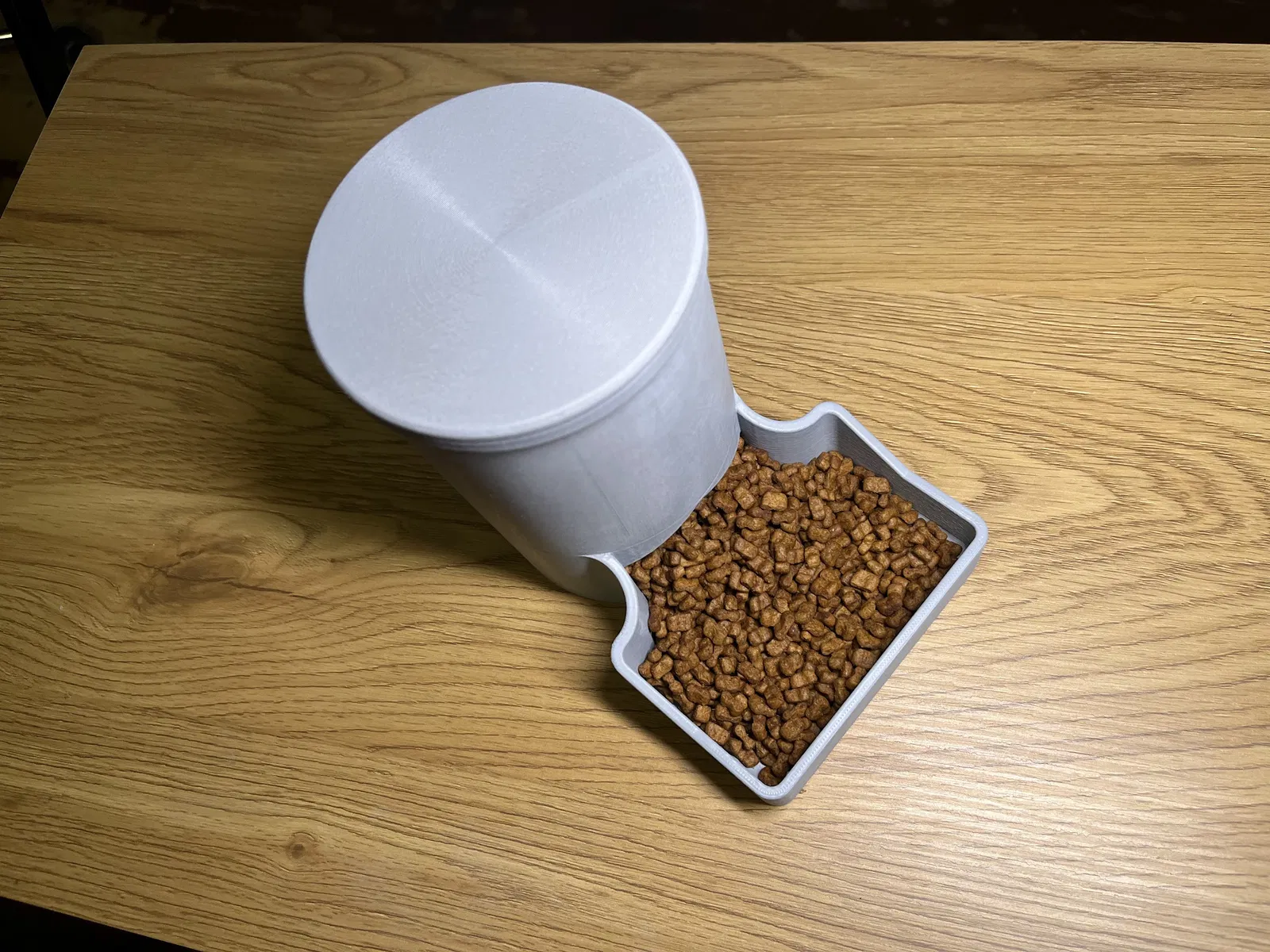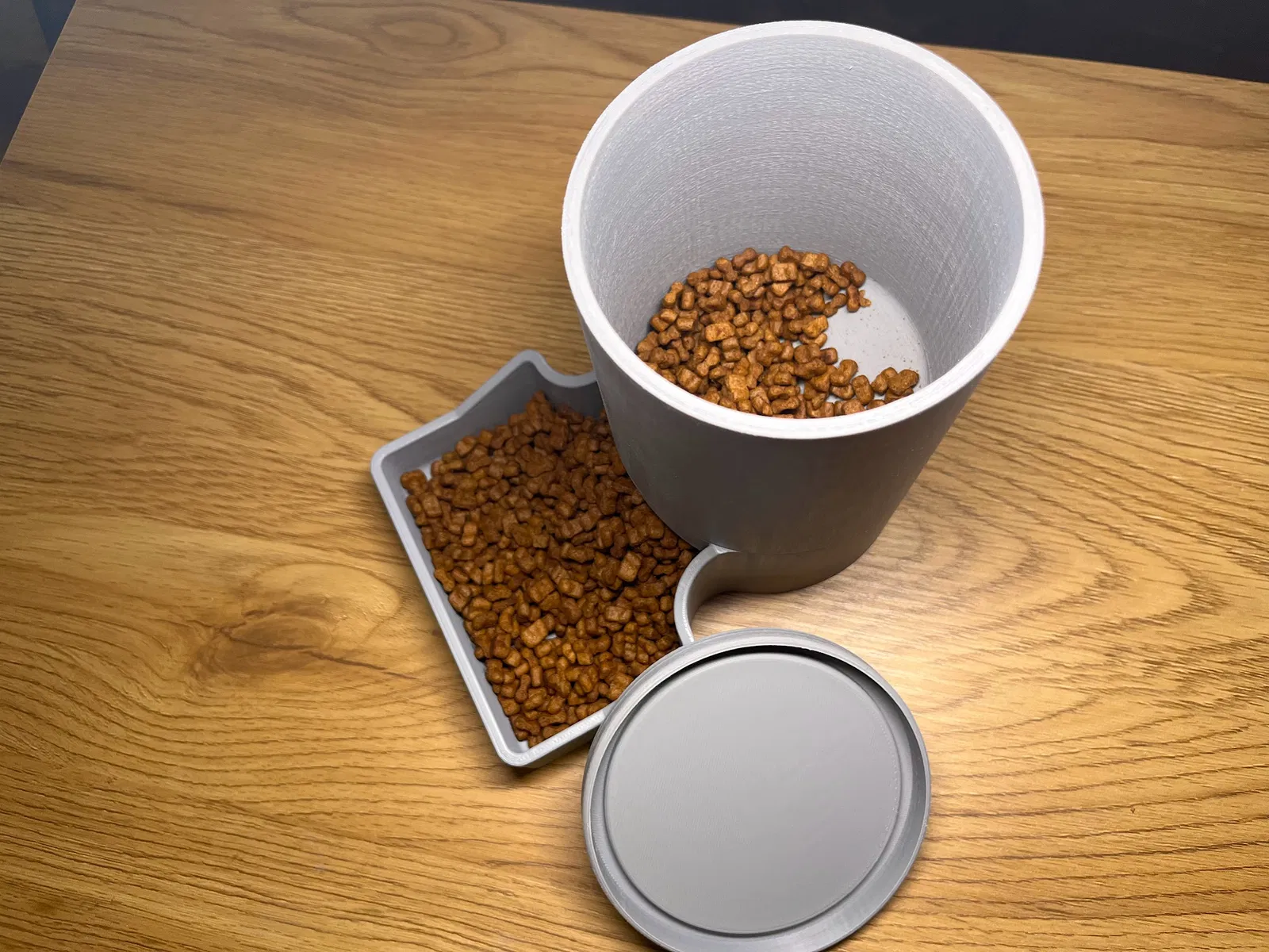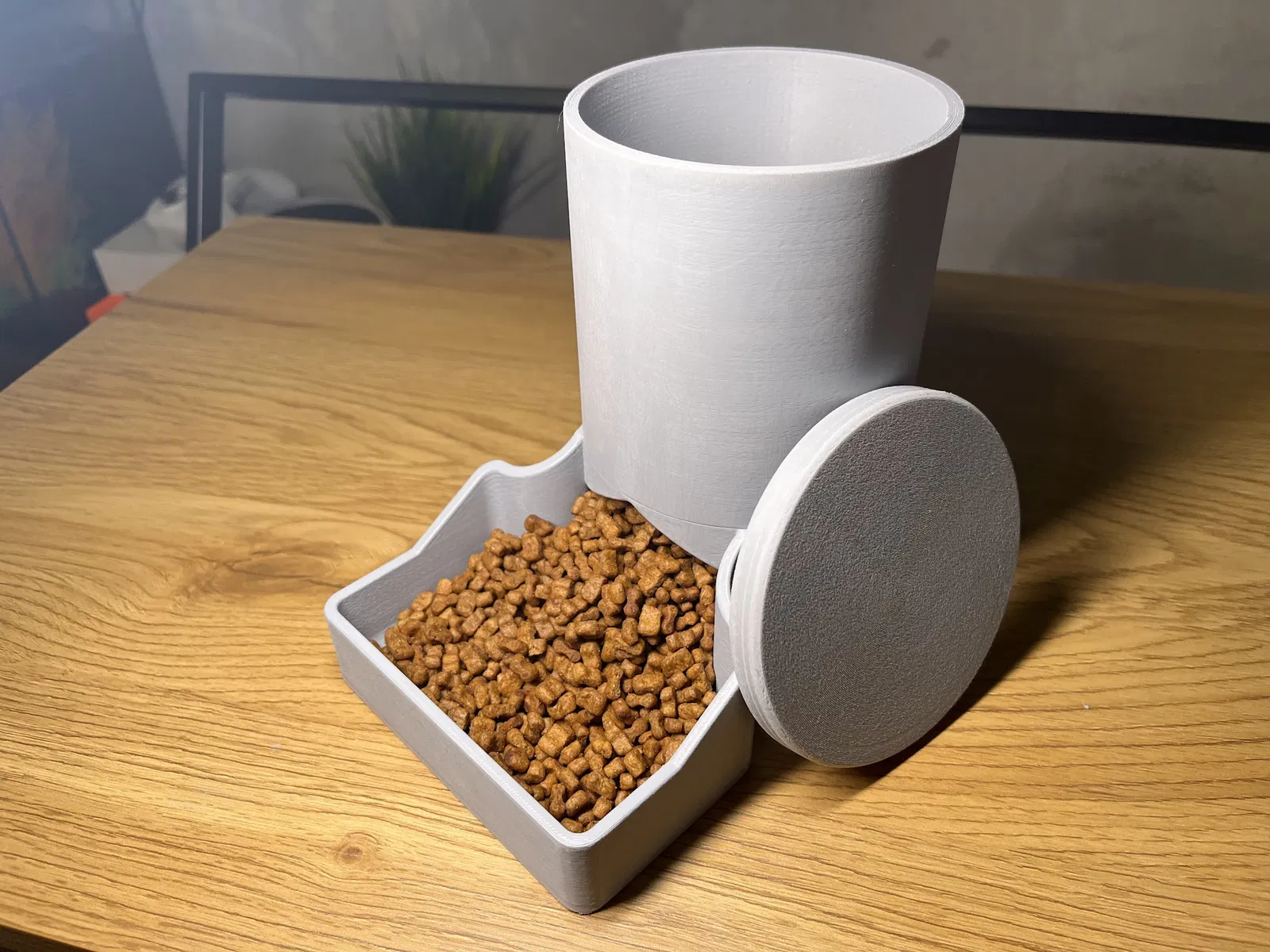 Mẫu khay cho thú cưng ăn tự động có 3 lựa chọn ống (10/15/20cm), lắp ren chắc chắn, nắp press-fit. Có nắp kín hoặc nắp honeycomb để dễ theo dõi mức thức ăn. Model pre-oriented, không cần supports.