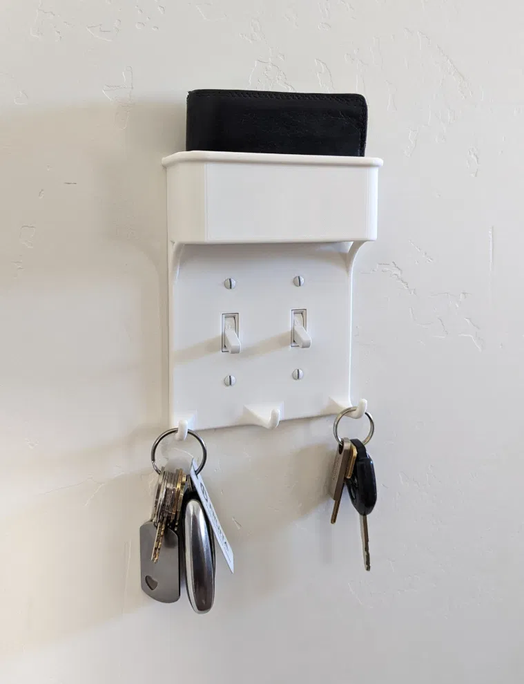 Chào mọi người, ai mà không thích sự gọn gàng, ngăn nắp cho ngôi nhà của mình đúng không nè? Đặc biệt là ở khu vực cửa ra vào, nơi chúng ta hay để chìa khóa, ví tiền, hay những vật dụng lặt vặt khác. Nay có một món đồ 3D print siêu hay ho sẽ giúp bạn giải quyết vấn đề này, đó chính là Ốp công tắc đèn đa năng kèm móc chìa khóa và khay đựng ví.