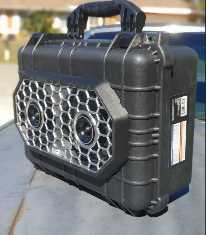 Bộ lưới loa và viền ngoài thiết kế riêng cho thùng Apache 3800, gắn 2 driver Recoil MX65. Có file .step để mod cho driver khác. Dùng 12 heat set insert M4 và ốc M4x16mm; lắp loa qua plate “case to speaker”.
