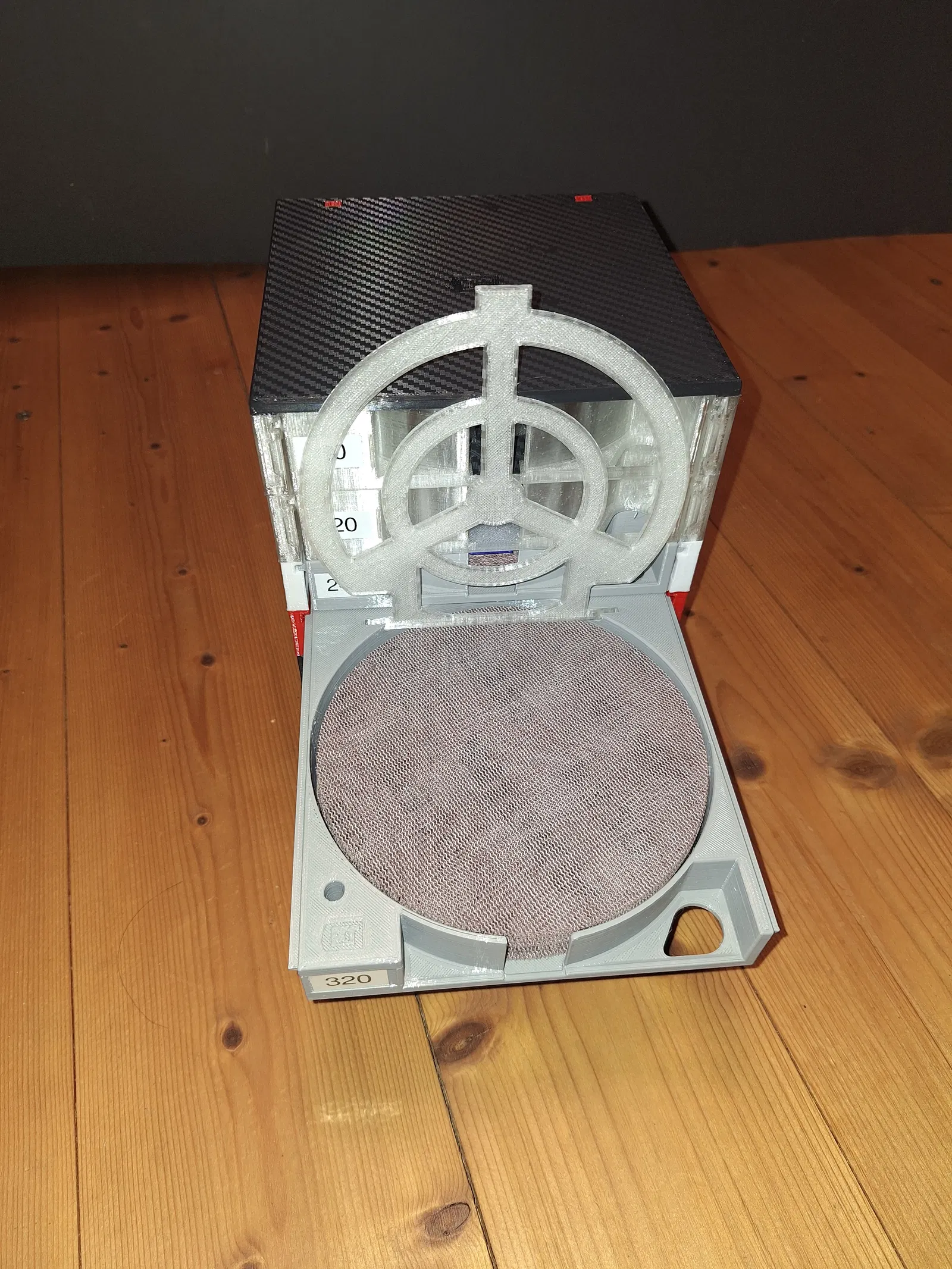 Khay đựng sanding disc cũng có thể dễ dàng tích hợp vào một vỏ gỗ (giống như model đầu tiên của mình). Nhìn sẽ sang hơn nhiều và rất hợp để làm quà tặng.