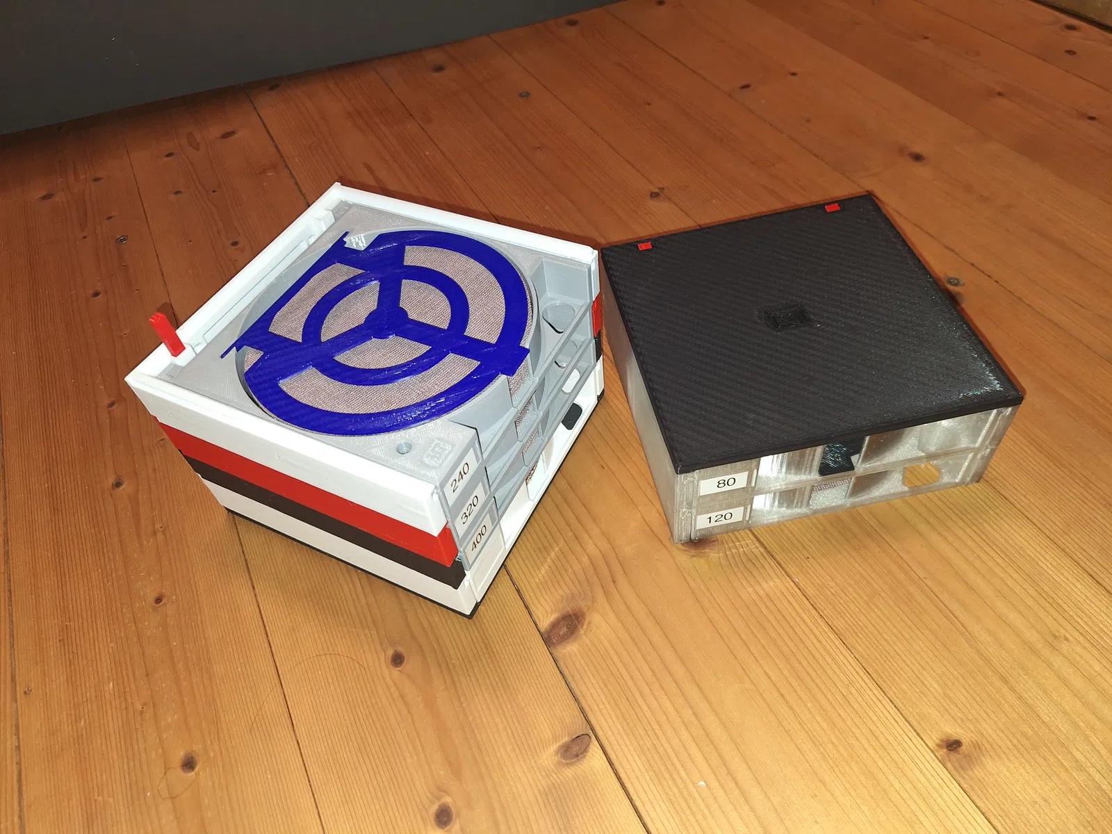 Stapelbarer Schleifscheibenhalter mit Schubladen