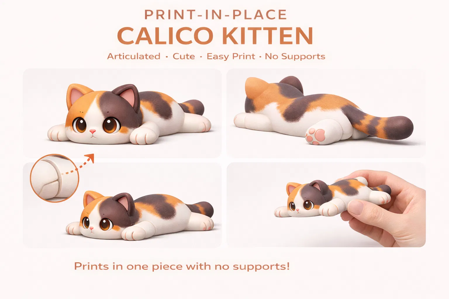 Chào mừng các bạn yêu mèo đến với mô hình 3D chú mèo tam thể siêu đáng yêu, được thiết kế theo phong cách "print-in-place" độc đáo. Với thiết kế khớp nối linh hoạt, chú mèo con này có thể uốn éo theo nhiều tư thế khác nhau, mang lại cảm giác sống động và ngộ nghĩnh. Đây sẽ là một món đồ trang trí tuyệt vời cho bàn làm việc, phòng ngủ hay bất kỳ không gian nào bạn muốn thêm chút dễ thương.