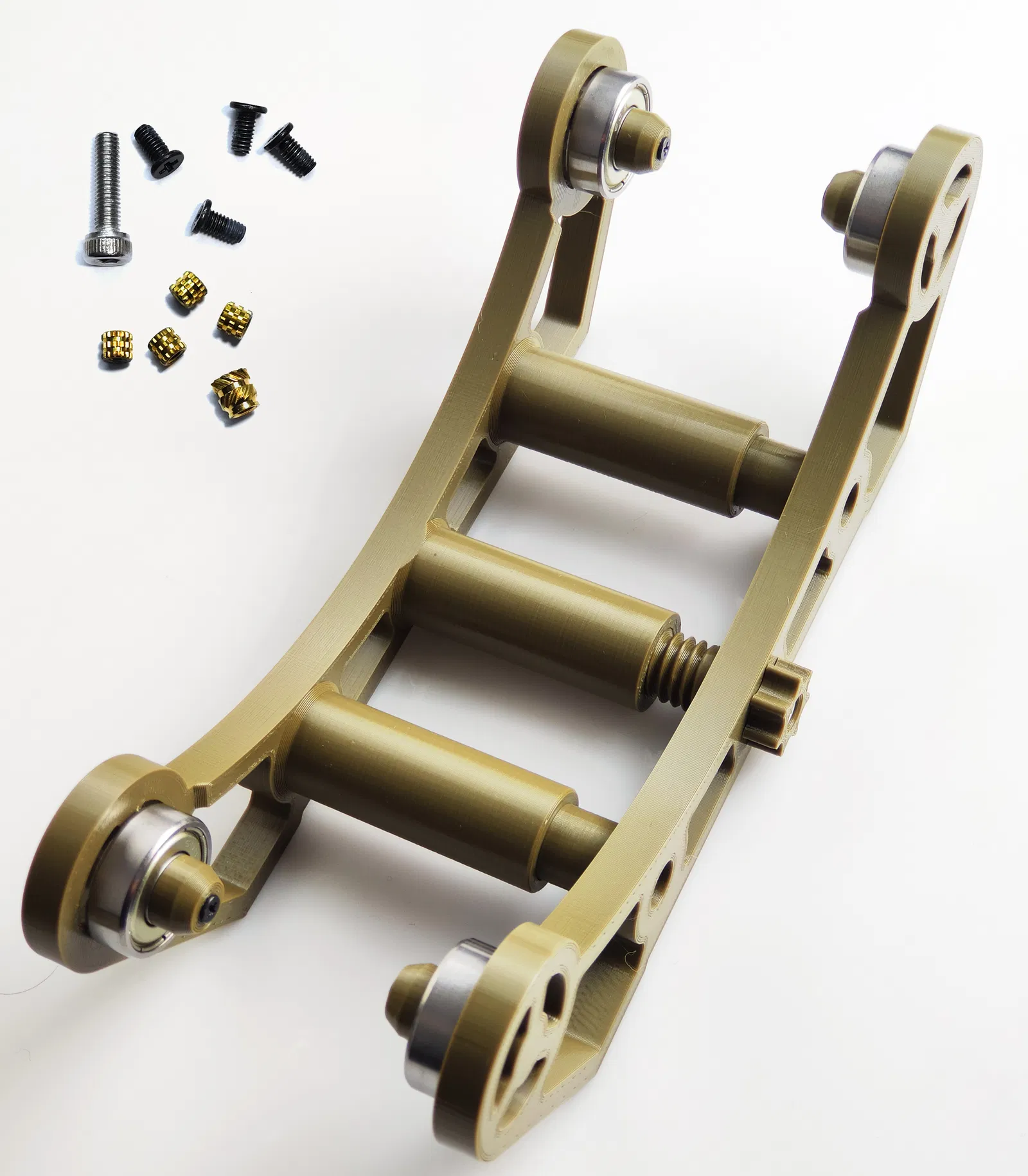 Mẫu giá đỡ cuộn filament có thể chỉnh bề rộng từ 45–75mm, phù hợp nhiều loại spool. Gợi ý in: layer height 0.2mm, 3 perimeters, top/bottom 4 lớp, infill 25%. Lắp ráp cần ốc M2.5/M3, heat‑set inserts và vòng bi 608Z.