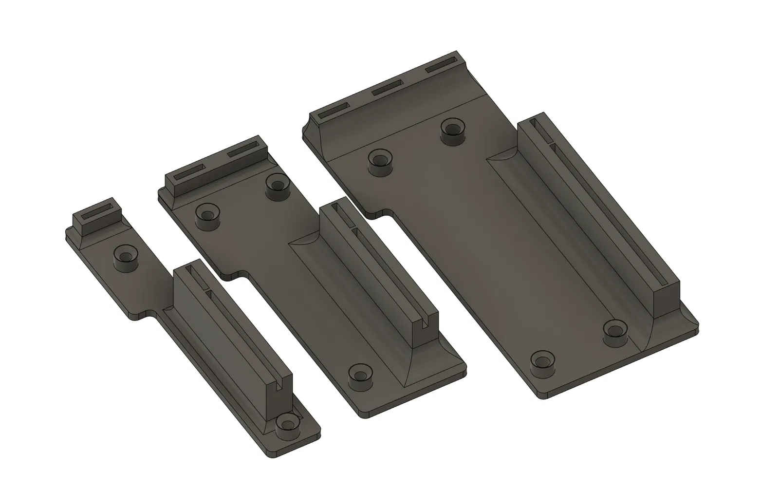 Mỗi phần đều được thiết kế với lỗ vát (tapered) để có thể luồn ốc qua. Thiết kế nhắm tới loại Spax 3 x 16mm countersunk metric screws, nhưng trong file .f3d thì có thể chỉnh dễ dàng theo nhu cầu để ai cũng remix được.