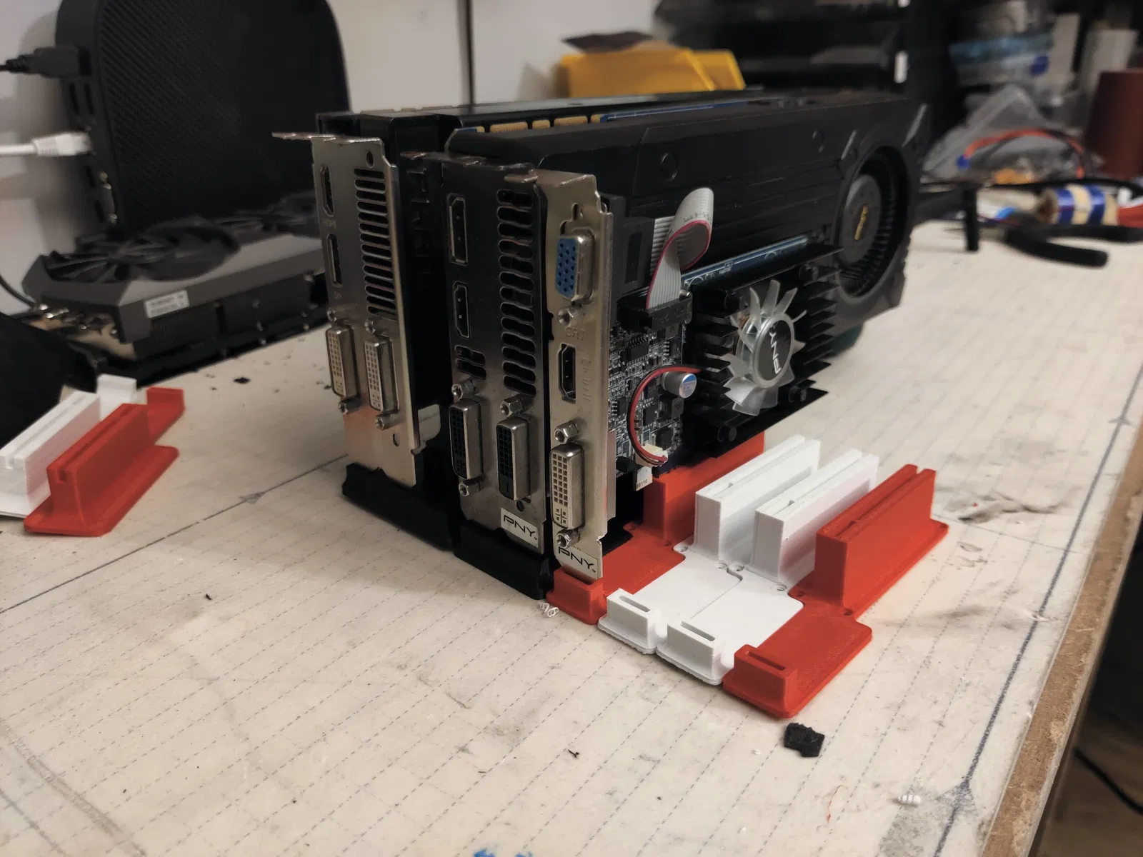 Kệ/organiser PCIe dạng ghép tileable để cất và trưng bày card PCI Express gọn gàng, theo chuẩn khoảng cách 20.32mm. Hỗ trợ card dày tới 3 slots (GPU), in tốt với PLA; khuyến nghị Wall Count ≥ 3.