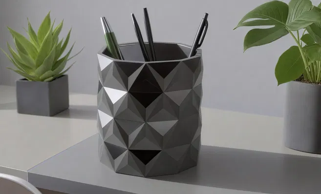 Ống cắm bút tối giản phong cách hiện đại với thiết kế hình học, dùng được như bình hoa nhỏ để trang trí. Có thể scale kích thước theo nhu cầu, phù hợp cho bàn làm việc hoặc không gian nhà ở.