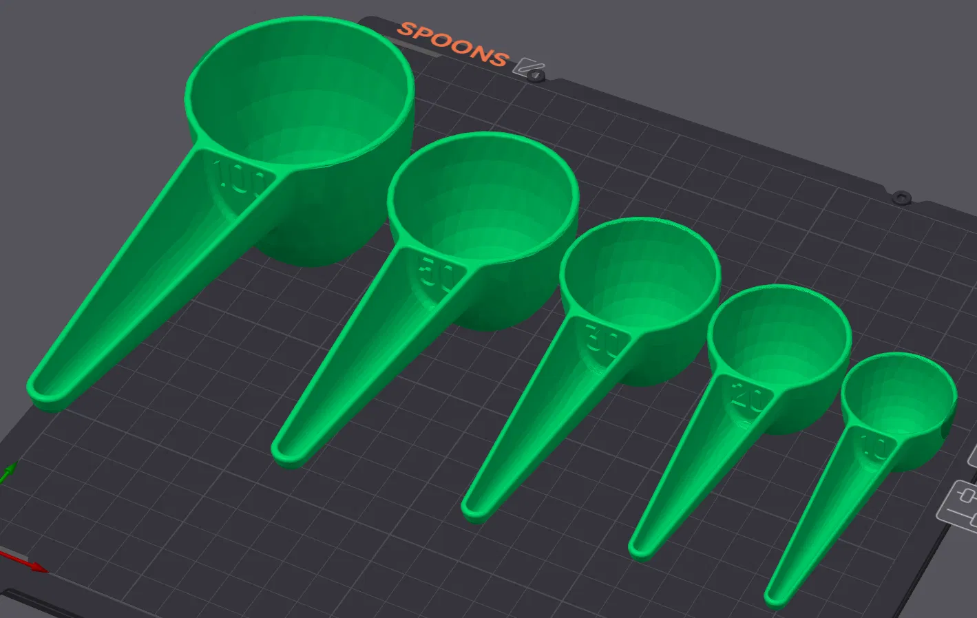 Giải pháp hoàn hảo cho nhu cầu đo lường của bạn với bộ muỗng định lượng 5 món (100ml, 50ml, 30ml, 20ml, 10ml). Thiết kế tay cầm dài tiện lợi, chất liệu nhựa PLA an toàn, bền bỉ, dễ vệ sinh. Sản phẩm in 3D không cần hỗ trợ, tiết kiệm chi phí và thời gian. Cực kỳ hữu ích cho việc nấu ăn, làm bánh, chăm sóc thú cưng, đong đếm nguyên liệu chính xác. Bộ muỗng này sẽ giúp công việc bếp núc và các nhu cầu đo lường khác của bạn trở nên đơn giản và hiệu quả hơn.