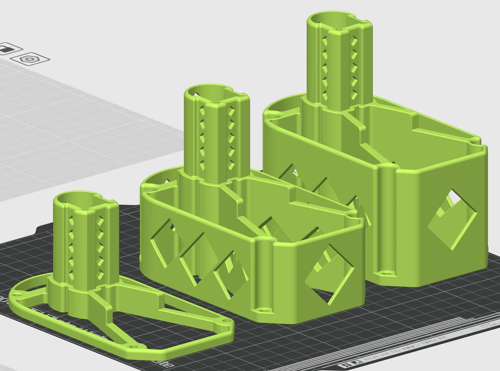 Giá treo dụng cụ Ryobi 18V (cưa đĩa) kiểu faux battery mount, thiết kế rỗng nên in không cần support và tiết kiệm filament. Đế dày dễ vát nhiều góc, lỗ vít dễ thao tác và nhìn gọn đẹp.
