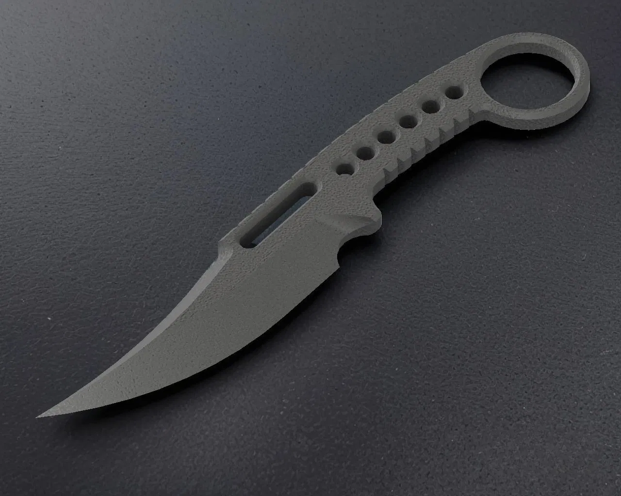 Mẫu Tactical Combat Karambit tối giản nhưng vẫn rất ngầu và tinh gọn. Phần khoét ngón tay theo cỡ nhẫn nam trung bình 20mm; bạn có thể scale theo bảng ring size/đường kính để vừa tay khi in 3D.