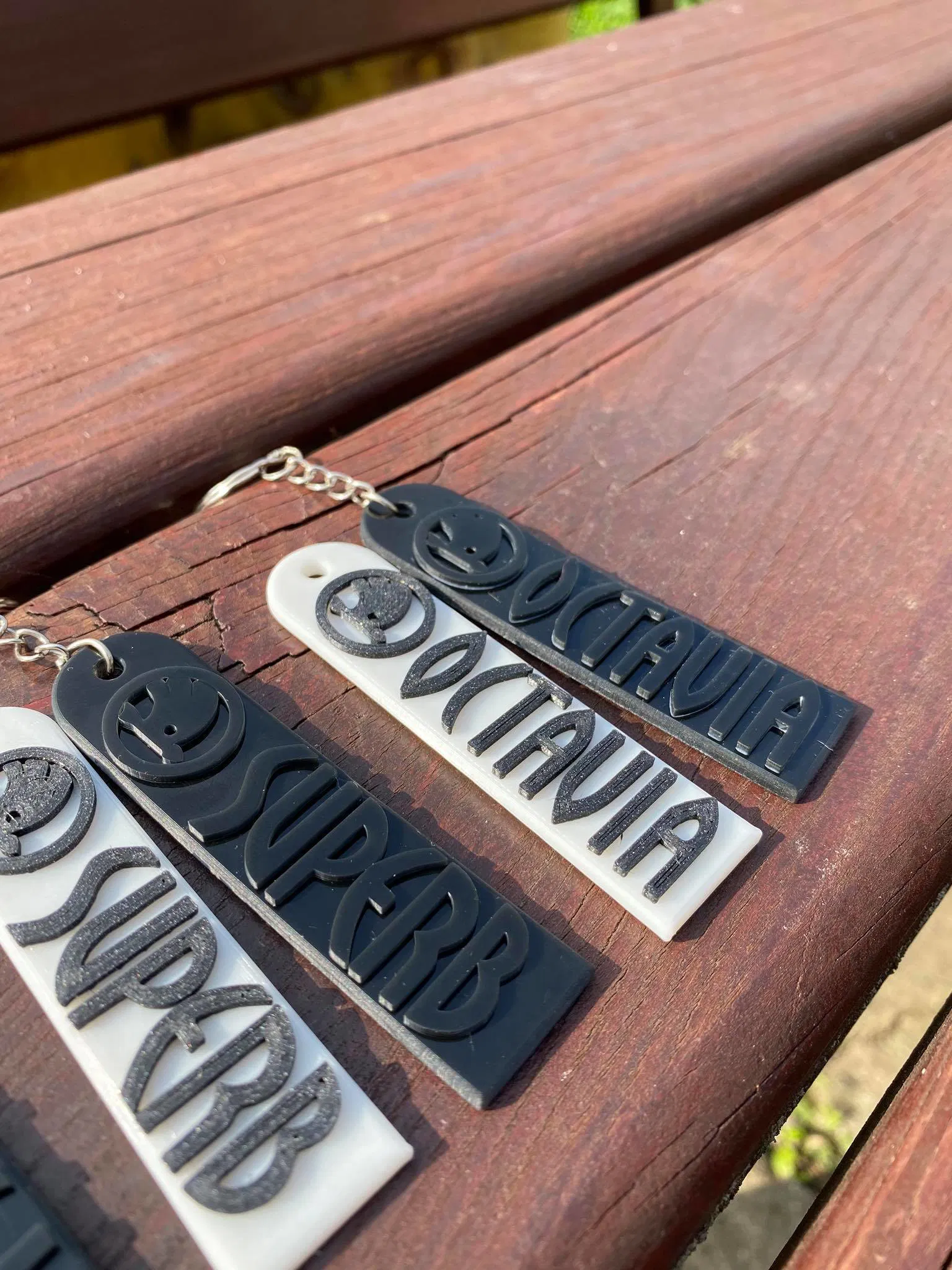 Giới thiệu bộ sưu tập móc khóa xe Skoda độc đáo dành cho các tín đồ của Skoda Octavia, Superb, Fabia, Felicia. Những chiếc móc khóa này không chỉ là phụ kiện trang trí mà còn là cách thể hiện niềm đam mê với thương hiệu xe hơi đến từ Cộng hòa Séc. Với thiết kế tinh xảo, tên xe và logo Skoda được thể hiện rõ nét trên nền đen hoặc trắng, tạo nên vẻ ngoài cá tính và sang trọng. Chất liệu nhựa PLA/ABS bền bỉ, dễ dàng in ấn theo yêu cầu về màu sắc và kích thước. Đây chắc chắn là món quà tuyệt vời cho bạn bè, người thân hoặc tự thưởng cho bản thân, giúp chìa khóa xe hay balo của bạn thêm phần ấn tượng.