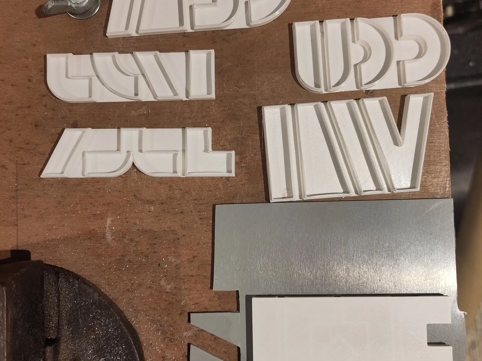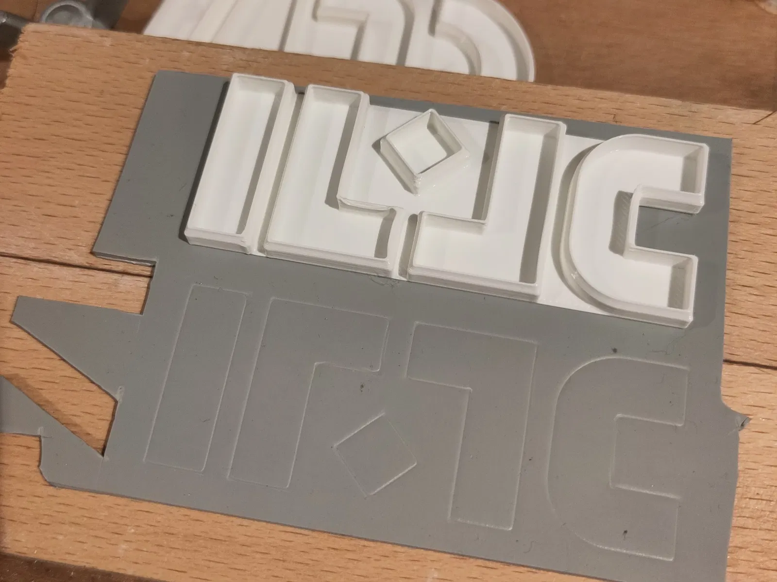 Tôi đã thiết kế và in các khuôn và kẹp chúng giữa hai mảnh gỗ trong cái kẹp của tôi. Điều này đã để lại một dấu ấn hoàn hảo của hình dáng con dấu và cũng vì đây là một vết lõm trong cao su nên đã cho phép cắt dễ dàng và chính xác bằng dao thủ công.