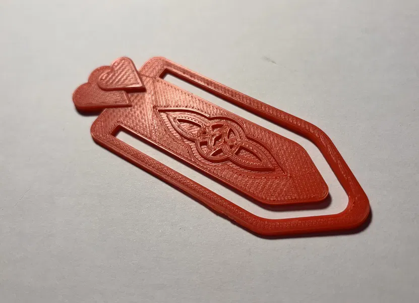 Dấu trang Valentine với biểu tượng Celtic “Serch Bythol” tượng trưng cho tình yêu bền vững. Kích thước khoảng 35×95mm, mỏng và dẻo, không làm hư mép trang; biểu tượng đặt chìm tránh hằn, tim nằm ngoài dễ nhìn.