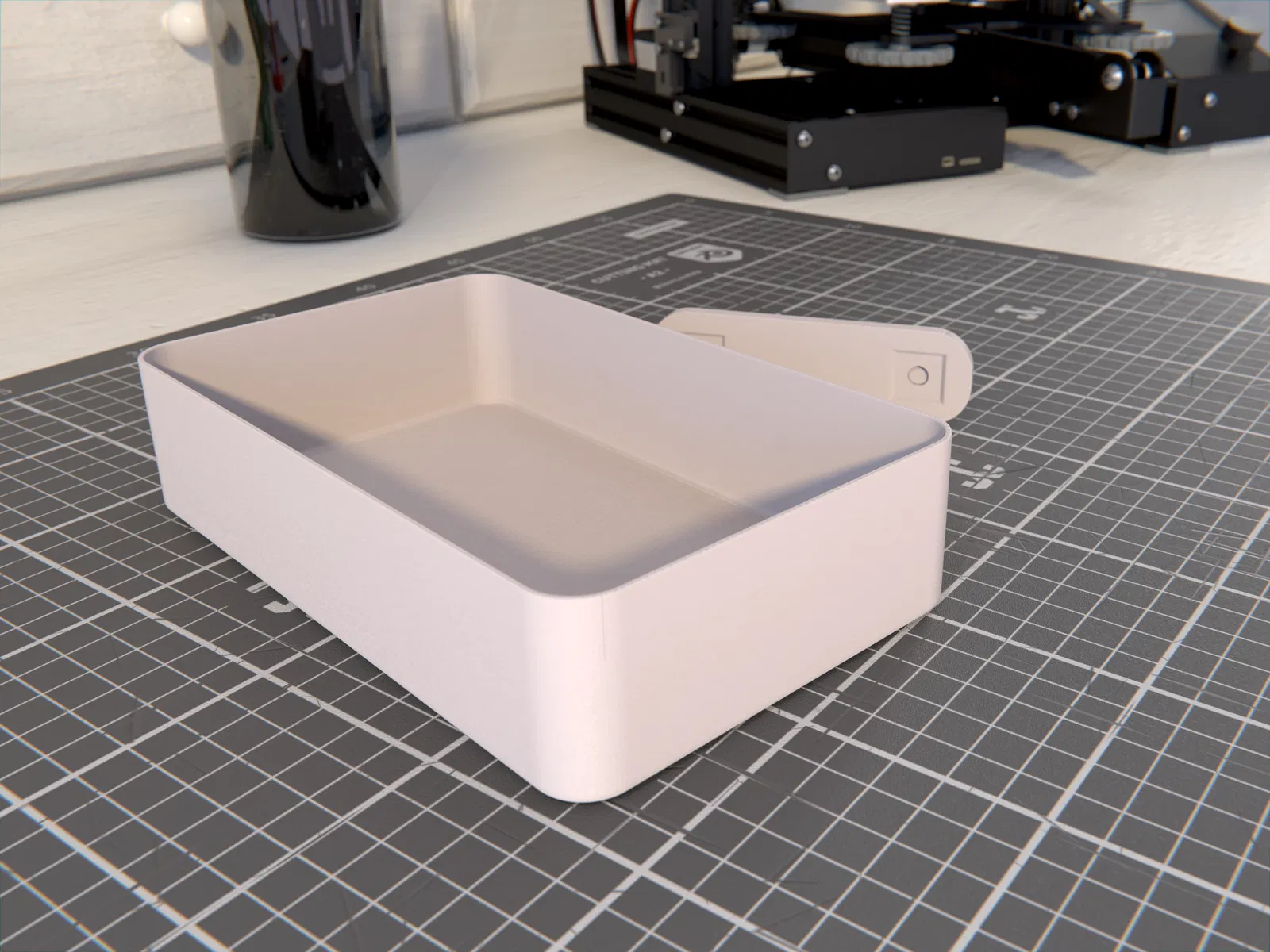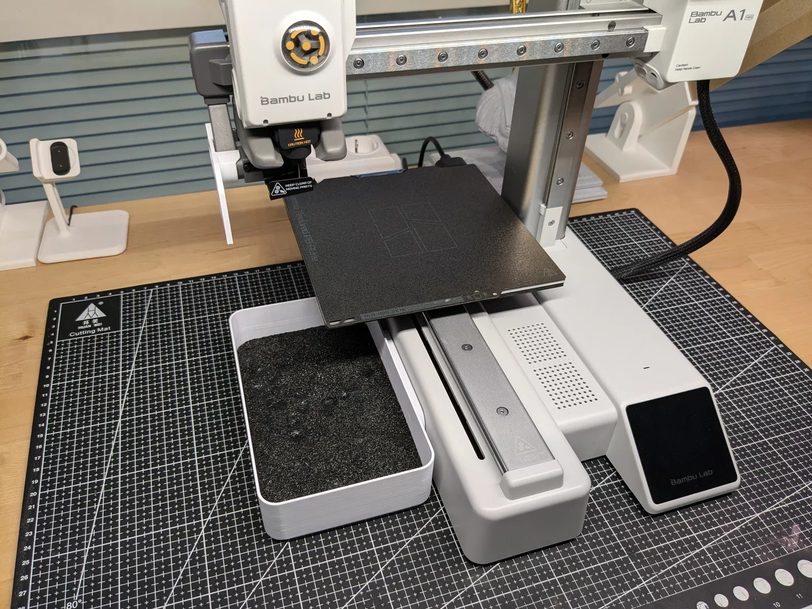 Mình kiếm một poop box cho A1 Mini mà không thấy mẫu nào có dùng magnets, nên mình tự thiết kế luôn. Ngoài ra, nó còn đóng vai trò như một cái chặn (hoặc điểm canh chuẩn) nếu bạn kê máy in sát vào tường bên hông. Phần receiver được làm hơi nghiêng để ôm theo cạnh bên của máy in.
