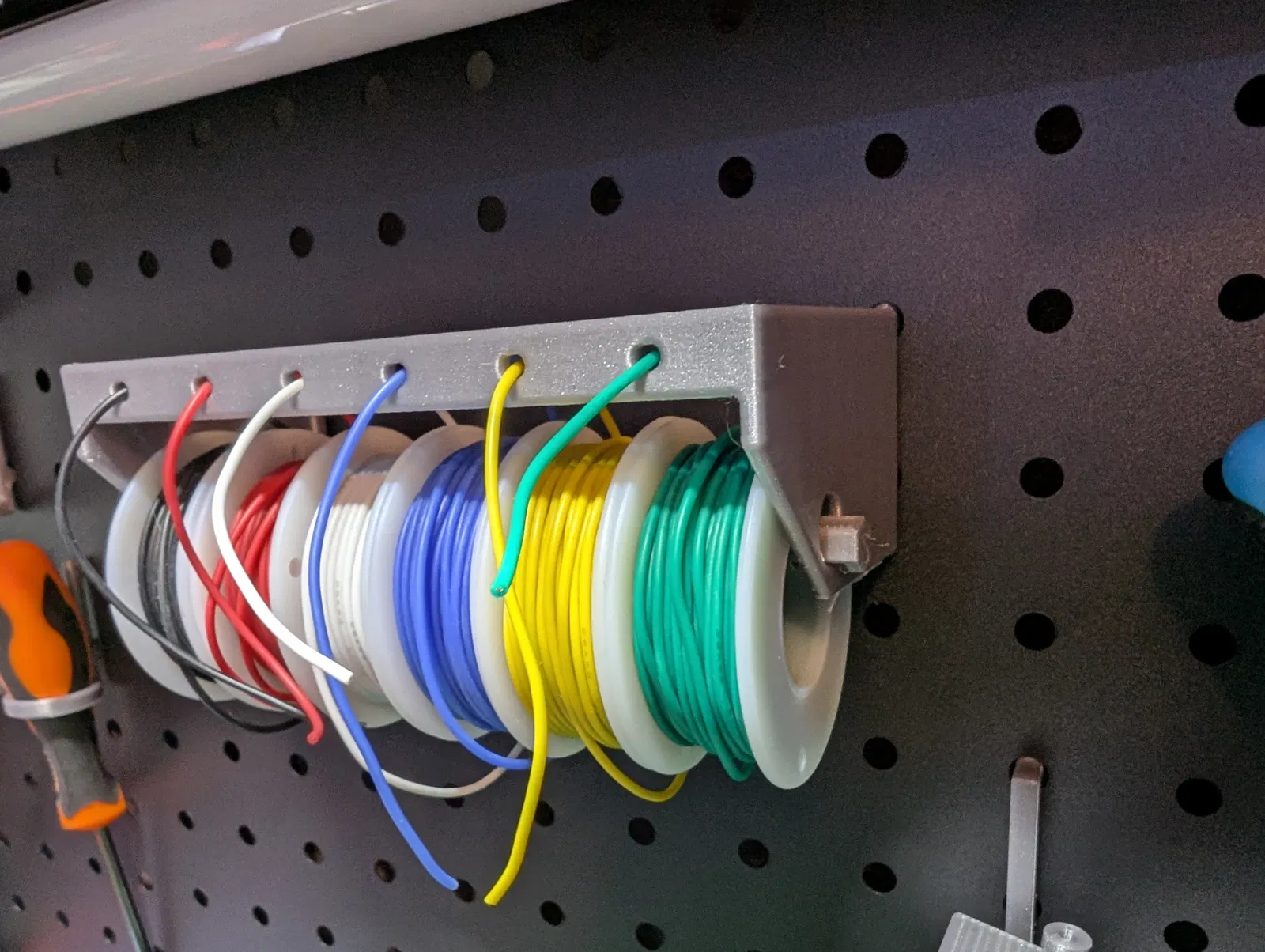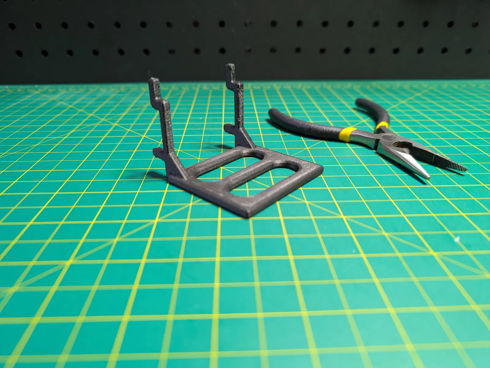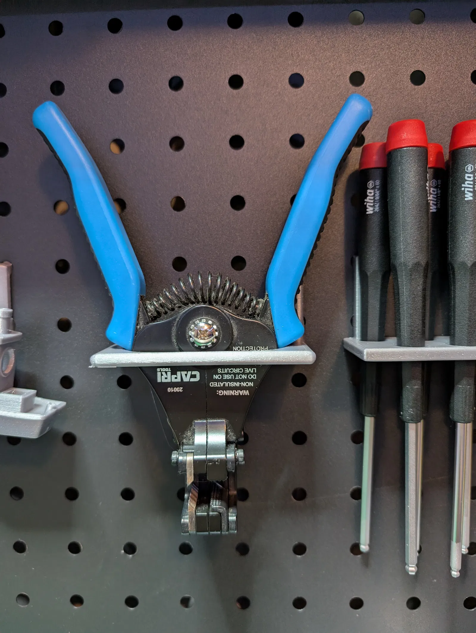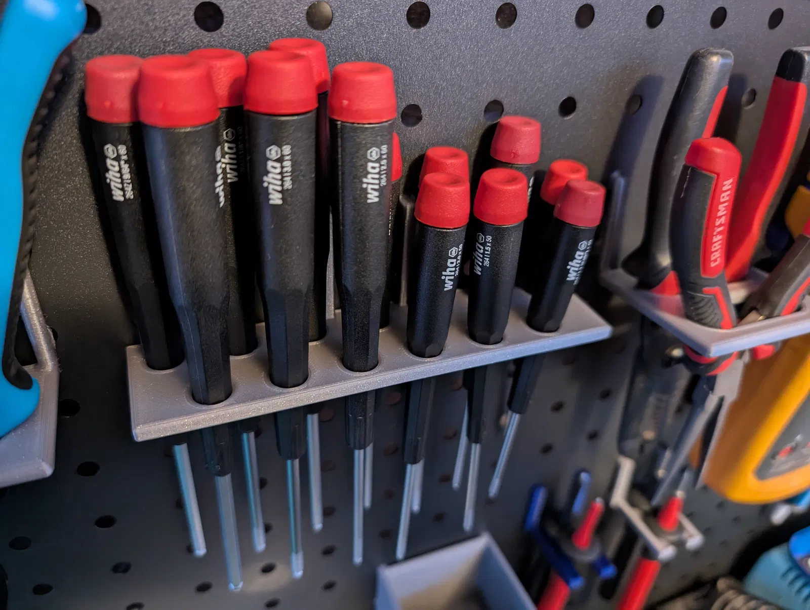 Bộ phụ kiện cho peg board, gồm file pliers-rack-v2 có thêm support ở chỗ tay móc nối với đế để chắc hơn. Khi lắp cần cẩn thận vì vẫn có thể gãy ở phía trên phần được gia cường, nhưng dùng ổn khi đã lắp xong.