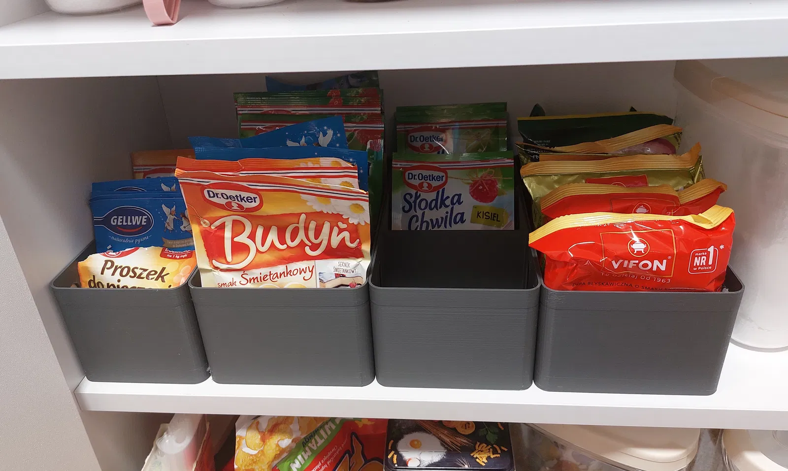 Mẫu hộp 3D “BOX kissel pudding soup” cao 81,5 mm với 3 kích thước 118x220, 108x220 và 93x220 mm, dùng để đựng pudding, jello, soup, baking powder hoặc vanilla sugar. Infill 15%, không cần support.