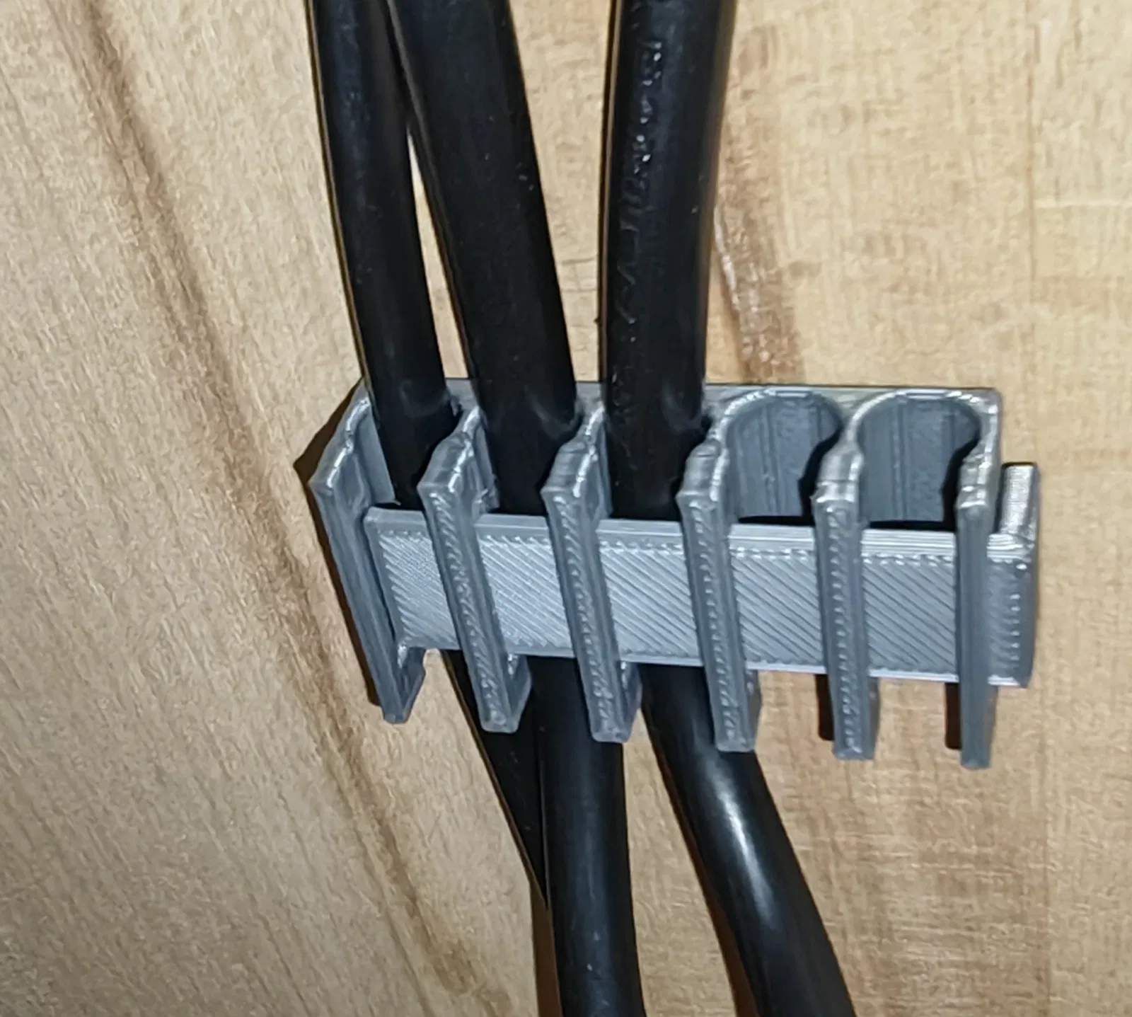 Đồ organizer này in rất dễ. Bạn có thể gắn bằng băng keo 2 mặt, keo dán hoặc vít. Luồn cáp vào rồi gài chốt (fuse) để giữ. Cáp có thể thêm/với ra rất dễ bất cứ lúc nào.