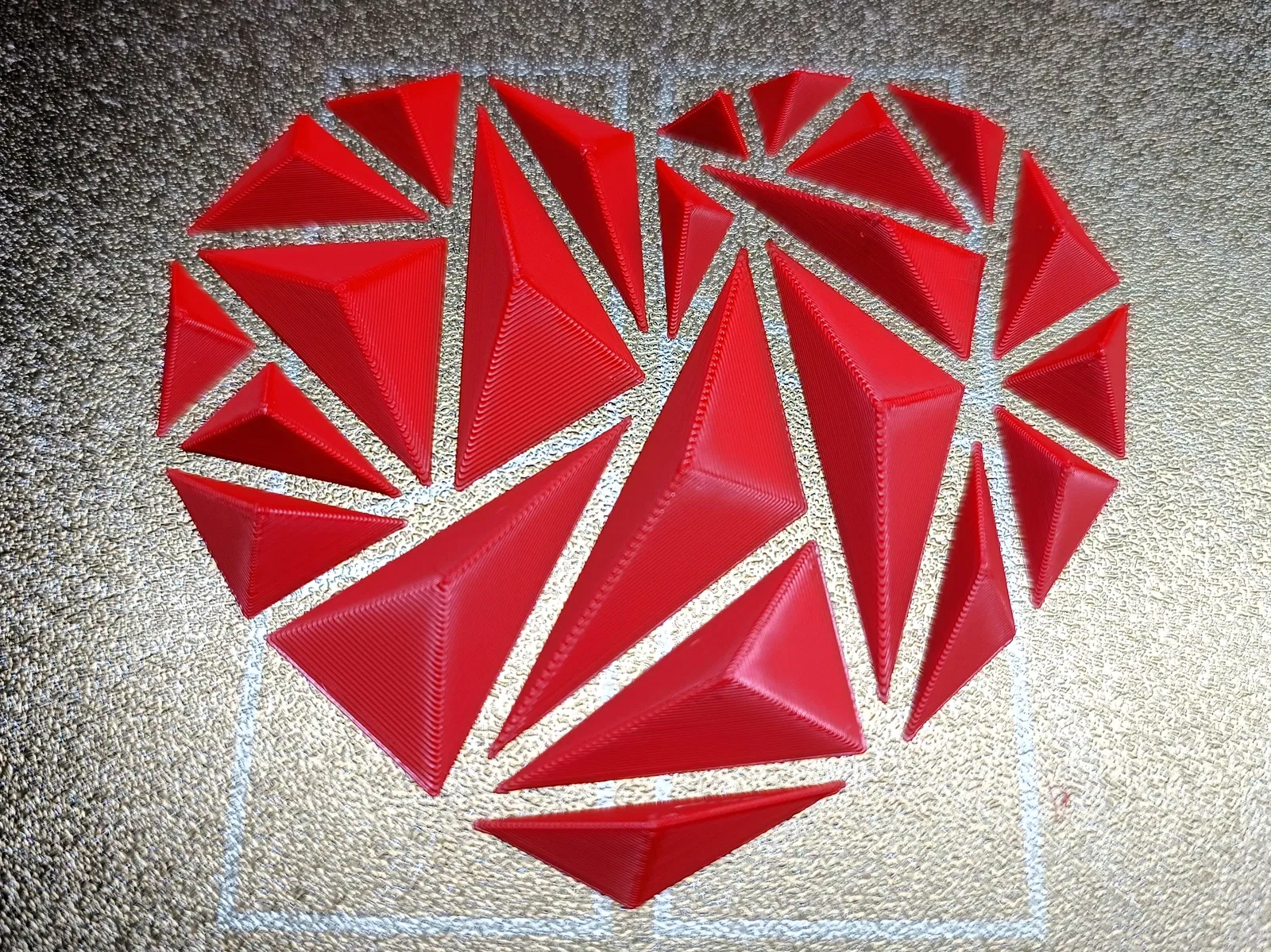 Khám phá mô hình Trái Tim Kim Tự Tháp 3D với thiết kế độc đáo, ấn tượng. Sản phẩm in 3D này không chỉ là vật trang trí tường hay phòng khách độc đáo mà còn là món quà Valentine ý nghĩa, thể hiện sự sáng tạo. Với hai kích thước 100mm và 220mm, bạn có thể dễ dàng lựa chọn. Đặc biệt, bạn có thể tùy chỉnh chiều cao của các kim tự tháp trong phần mềm slicer để tạo hiệu ứng thị giác riêng. Hãy in ngay để sở hữu một trái tim kim tự tháp đầy phong cách, hoặc kết hợp cùng các mô hình khác để tạo nên bộ sưu tập ấn tượng nhé!