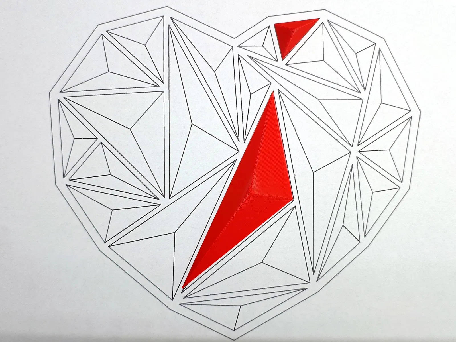 Mô hình trái tim với thiết kế hình kim tự tháp độc đáo này sẽ mang đến một điểm nhấn ấn tượng cho không gian của bạn. Dù bạn muốn trang trí tường nhà, phòng khách hay làm quà tặng cho người thương trong dịp Valentine, sản phẩm in 3D này đều là một lựa chọn tuyệt vời. Với những mặt phẳng và góc cạnh sắc sảo, trái tim kim tự tháp tạo nên hiệu ứng thị giác đầy thu hút, thể hiện sự sáng tạo và gu thẩm mỹ tinh tế.