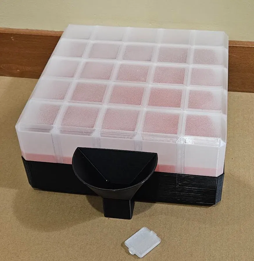 Phễu châm nước đơn giản giúp đổ nước vào “Self-Watering Seed Starter” gọn gàng, không bị tràn do lỗ châm nước nhỏ. Theo thiết kế/file Blender, lỗ hút nước giống nhau nên có thể hợp nhiều kích cỡ (1x3, 2x3, 3,3, 5,5…).