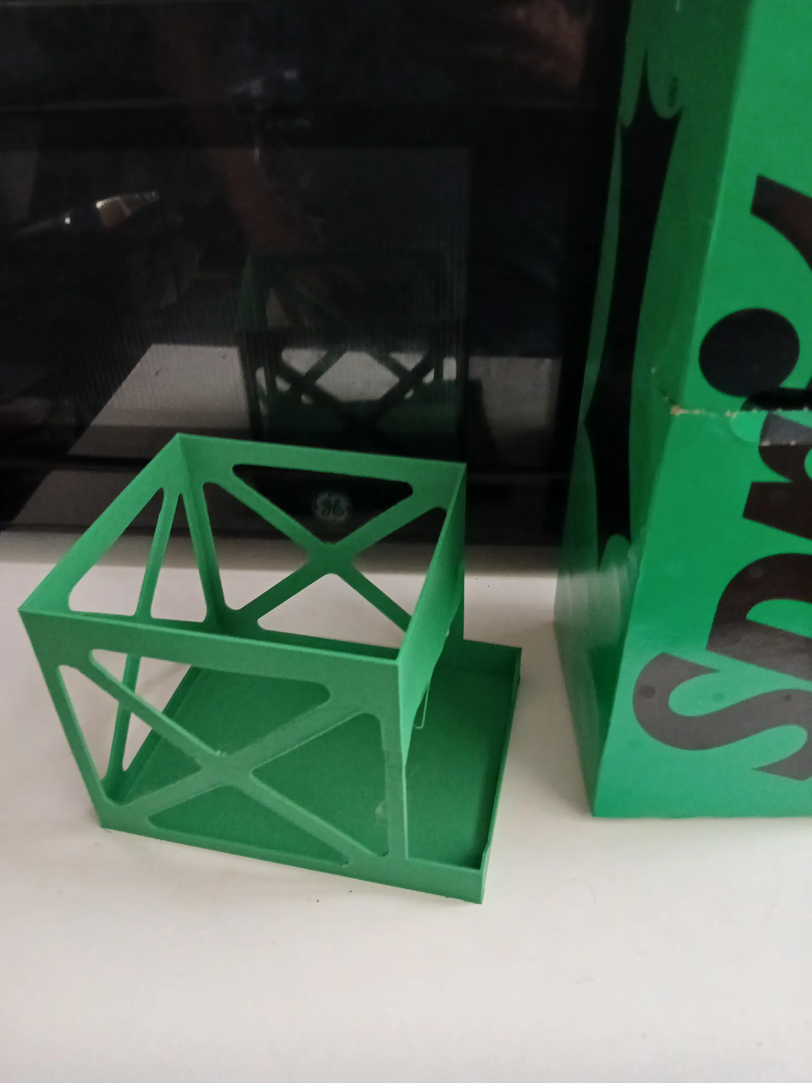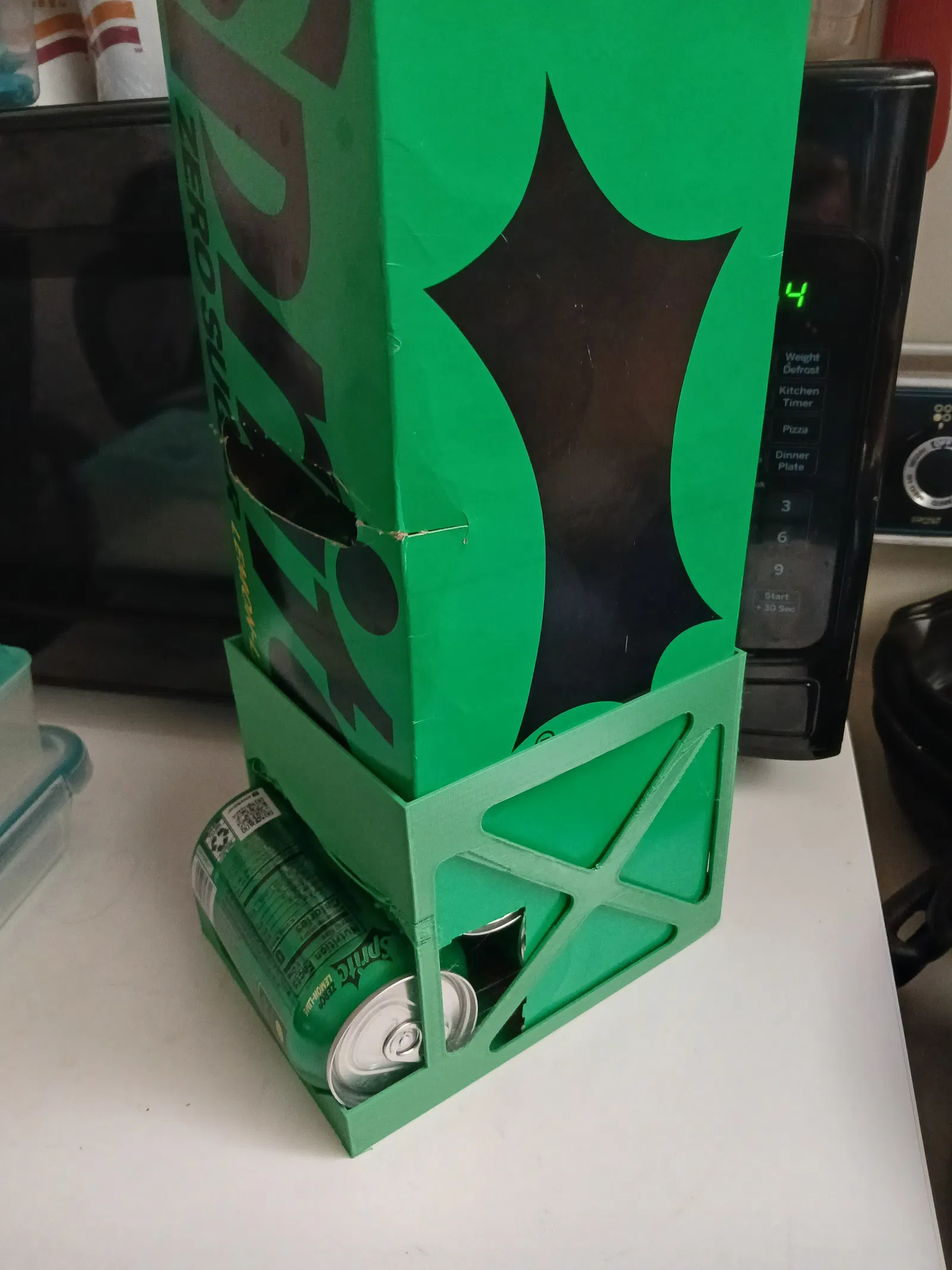 Thiết kế này để dựng đứng 1 thùng 12 lon, cho phép lấy lon ra từ phía dưới. Model tận dụng luôn cái thùng carton gốc để làm kết cấu, nên chỉ cần xài tối thiểu filament.
