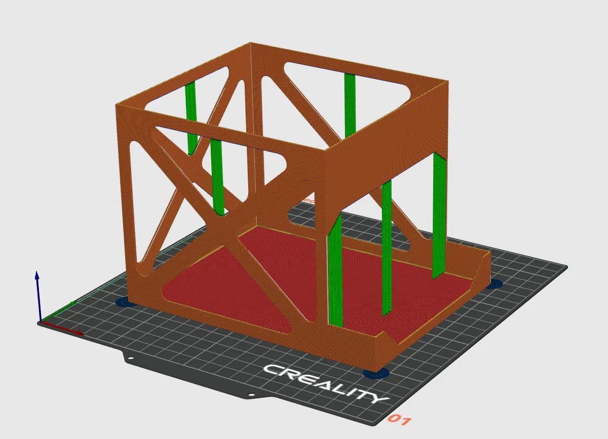 Vách mỏng giờ là 1.6mm theo gợi ý của vài bạn, hợp hơn với độ dày line/wall tiêu chuẩn 0.4mm của đa số máy in. Vách dày là 2.4mm giúp cứng hơn trong lúc in, và làm bridge dễ in hơn.