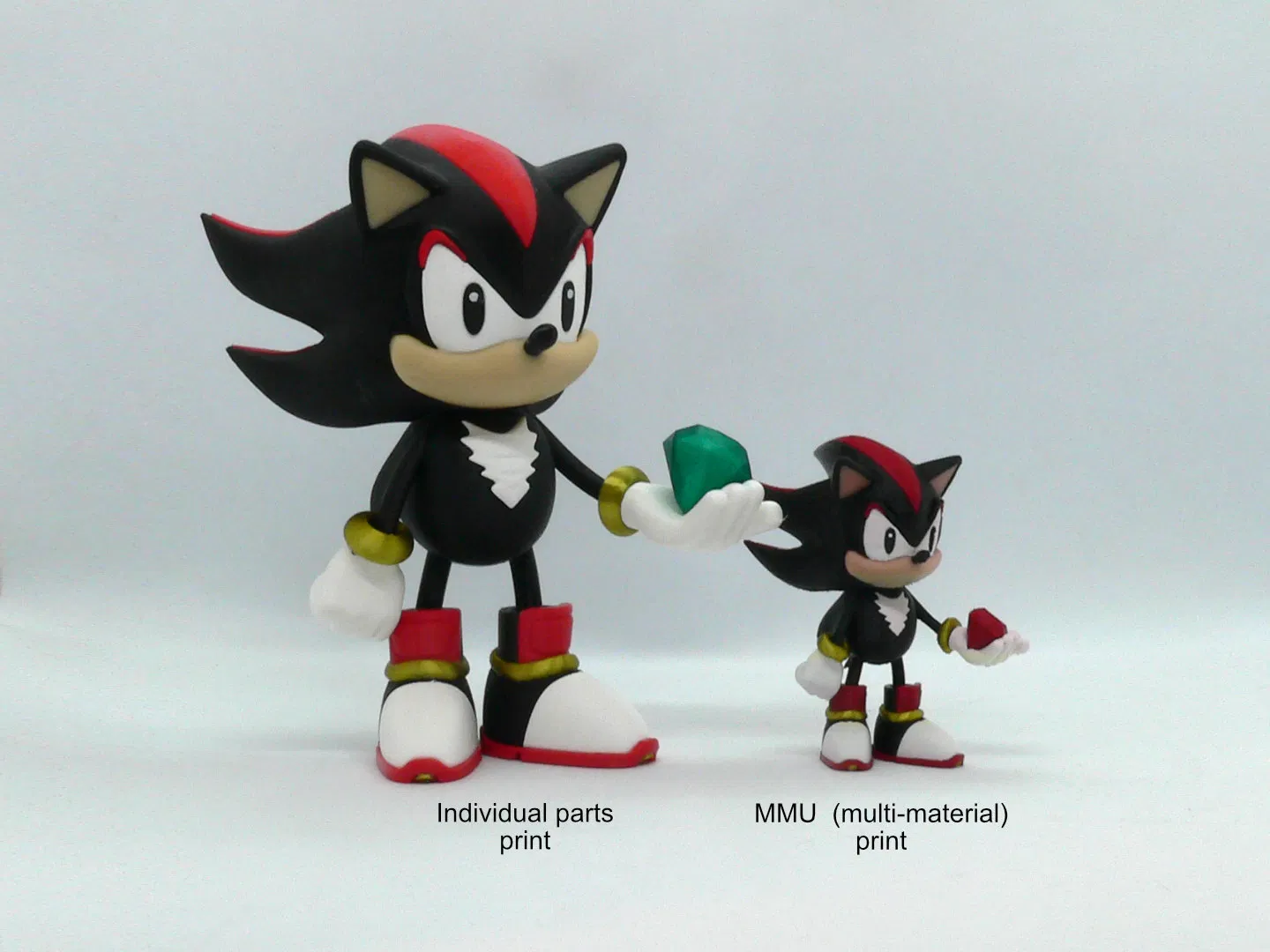 Phiên bản MMU của Shadow - Classic (nhân vật Shadow trong series Sonic). Mẫu cao 81mm, được rework từ bản tách part trước đó để in MMU sạch hơn. Có file 3MF cho PrusaSlicer và STL rời, kèm lưu ý về Gem và purge.
