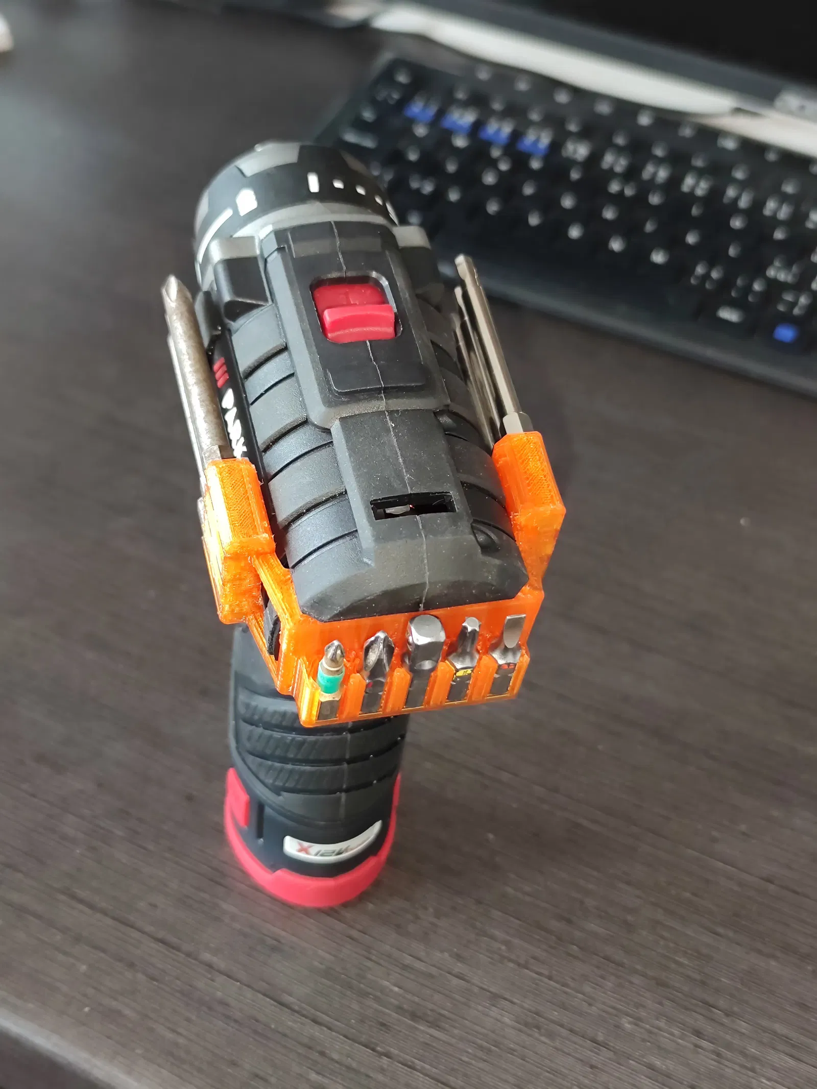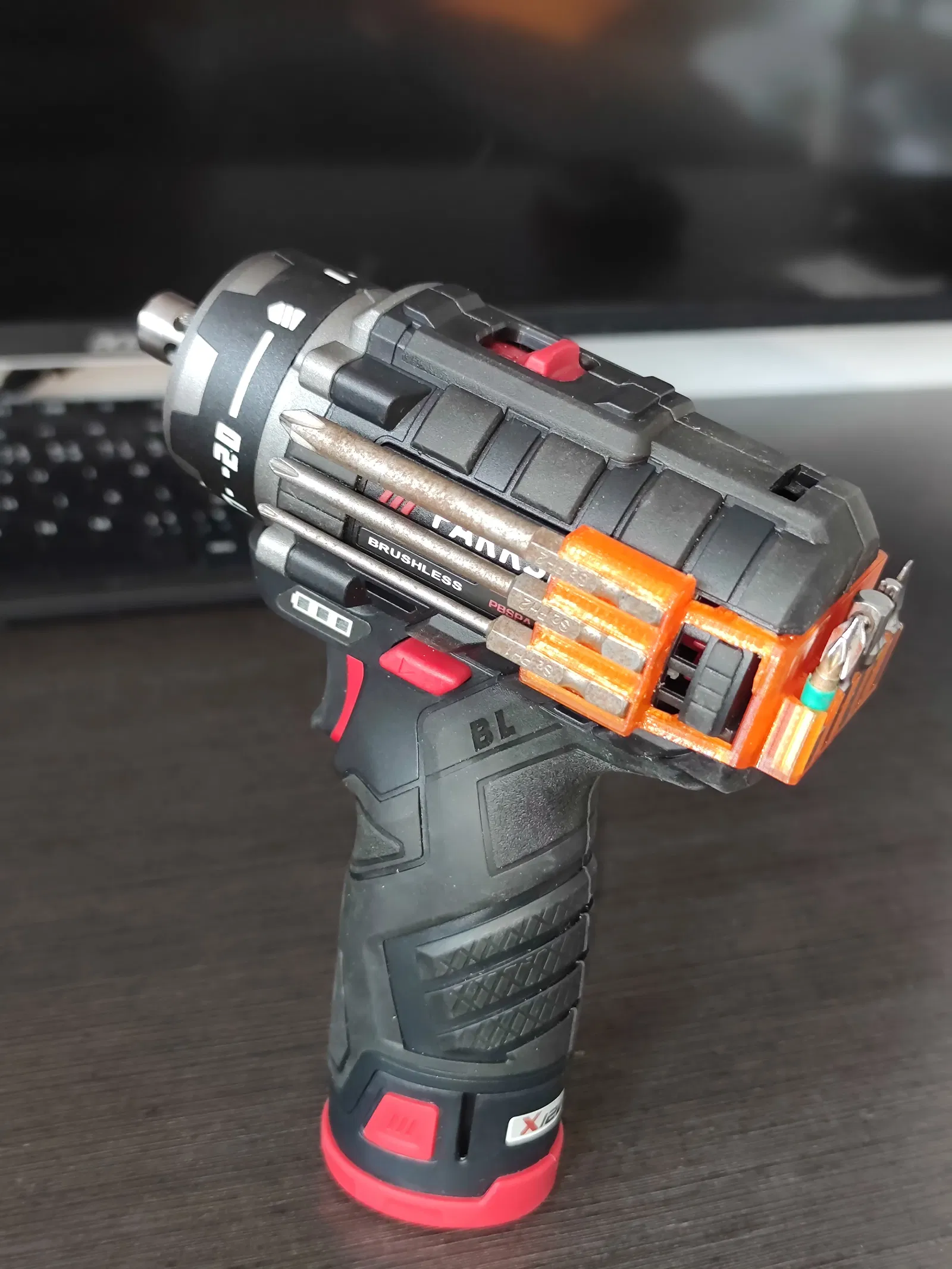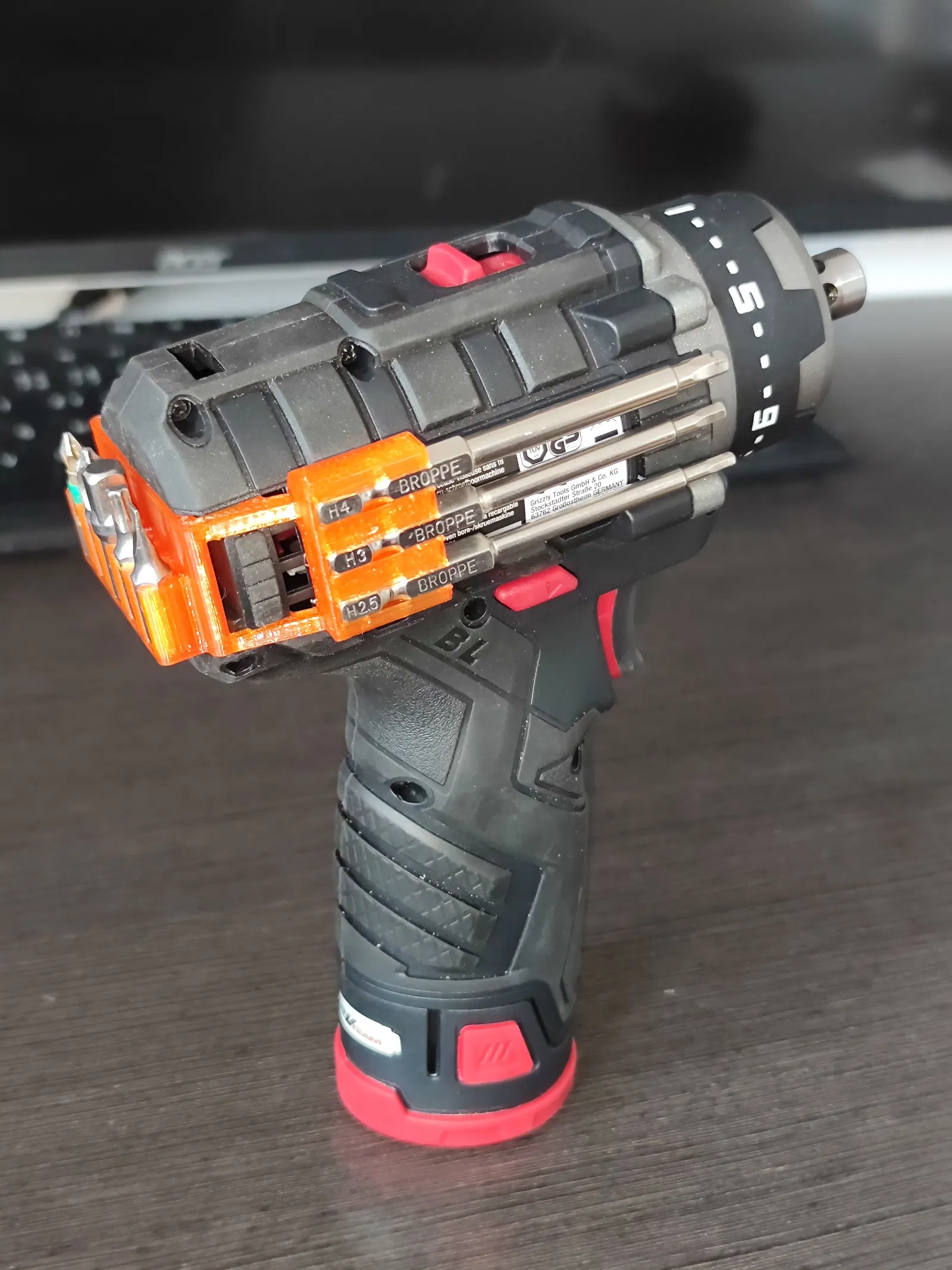 Giải pháp tối ưu cho máy bắt vít Parkside PBSPA: giá đỡ mũi khoan phiên bản lớn, gắn trực tiếp lên thân máy thay thế logo. Giờ đây, anh em thợ có thể mang theo nhiều mũi khoan, đầu vít thông dụng ngay trên máy, giúp truy cập nhanh chóng và tiết kiệm thời gian tìm kiếm. Sản phẩm được thiết kế thông minh, dễ dàng lắp đặt và không gây cản trở khi sử dụng. Nên in bằng vật liệu PETG hoặc ABS với độ cao lớp 0.2mm để đảm bảo độ bền và thẩm mỹ. Sở hữu ngay để nâng cao hiệu quả công việc!