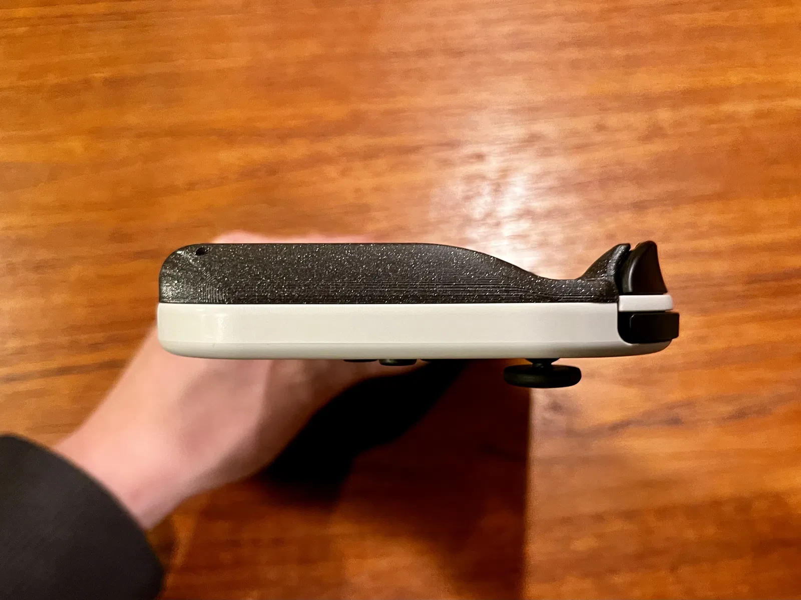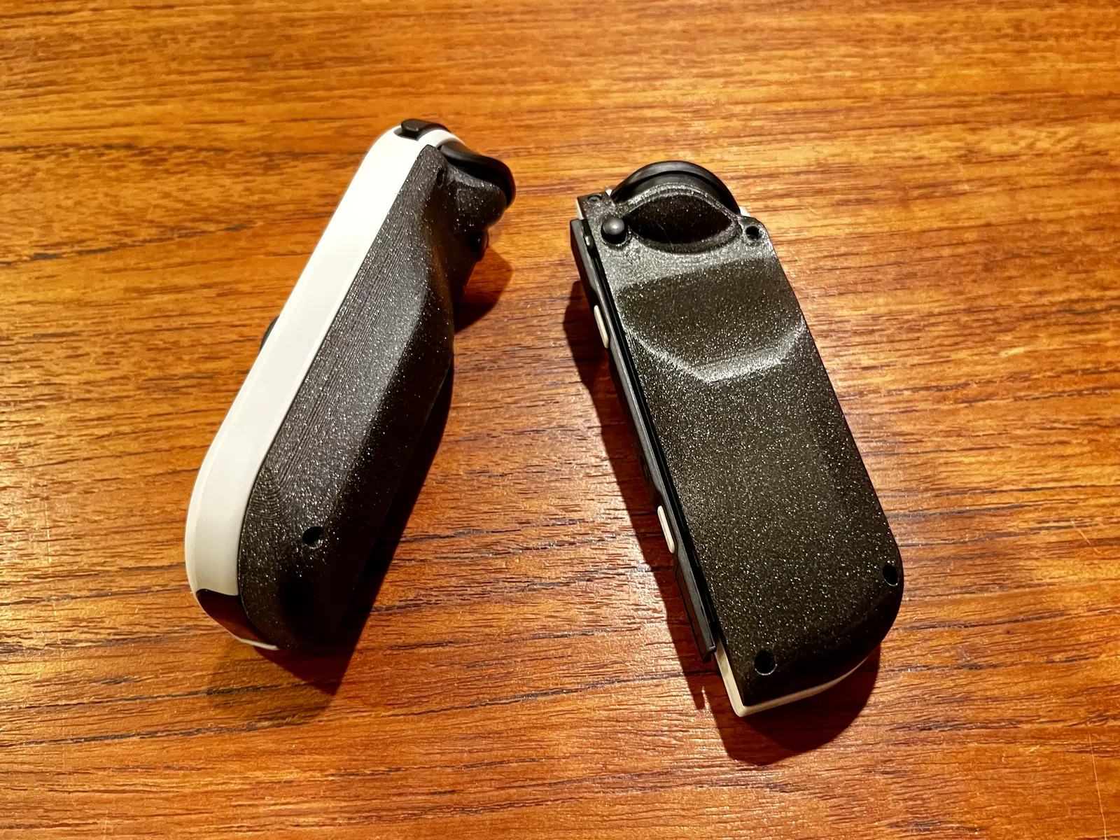 Đây là bộ vỏ sau thay thế cho Joy-Con của Nintendo Switch. Nó thêm phần tay cầm ergonomic giúp cầm Switch ở chế độ handheld thoải mái hơn nhiều. Mục tiêu của mình là thiết kế một kiểu grip cho cảm giác gần với OEM nhất có thể và không làm tăng kích thước tổng thể của Switch. Phần grip nhô ra khoảng 1mm so với chiều cao của triggers để Switch có thể đặt phẳng trên bàn mà không tì lên triggers. Vì đây là vỏ sau thay thế nên rất chắc chắn và cho cảm giác như là một phần nguyên bản của Joy-Con.