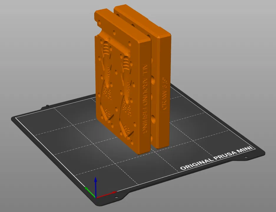 SlingCraw 3.5'' là mồi câu bass đa dụng. Khuôn injection 2 mảnh bắt vít 5mm, có .gcode tối ưu cho PrusaMini (PLA). Khuyến nghị infill 30–35%, 6–7 perimeter, in vertical; plastisol có thể làm khuôn biến dạng theo thời gian.