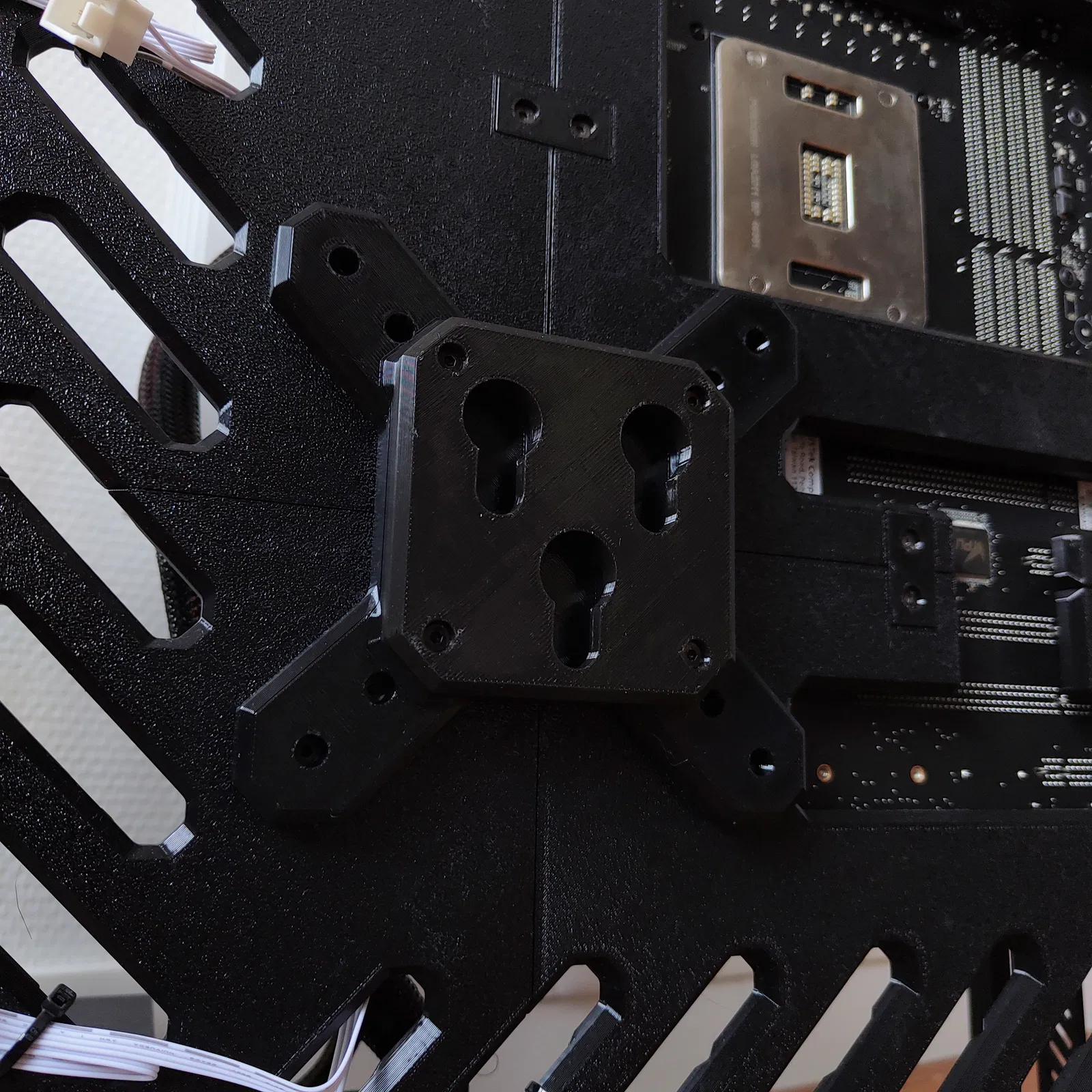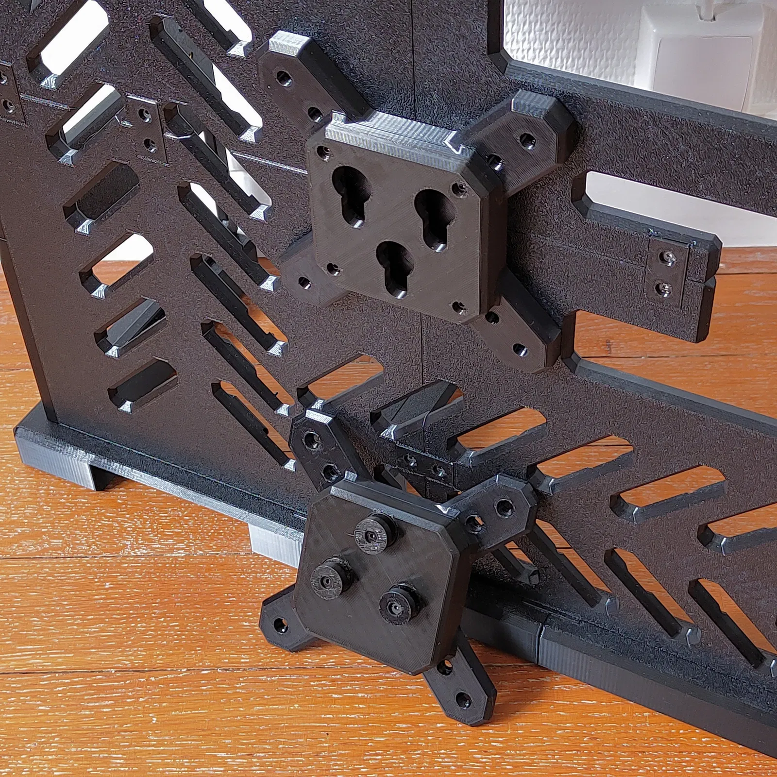 Sản phẩm được in cẩn thận bằng sợi GST3D PETG màu đen, ưu tiên tính thực tế mà vẫn giữ được vẻ gọn gàng. Thiết kế có 115 insert M3x4 và 115 ốc M3x6, cộng thêm 4 ốc M4x8 để bắt một chi tiết in 3D lên màn hình — mọi thứ đều đã được tính kỹ.