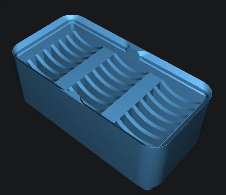 Là một cái bin thôi. Bất ngờ chưa! Và nó chứa được tối đa 21 viên pin CR2032 theo format Gridfinity 2x1. Thêm nữa là khi để đầy pin thì vẫn stackable được. Giải quyết luôn vụ lưu trữ của mình.