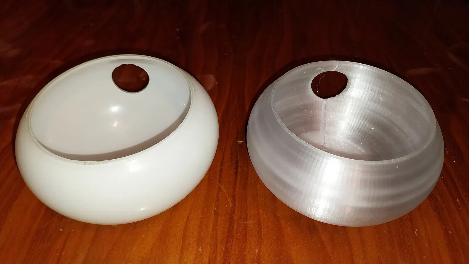 Cháu gái của tôi đã phá hủy 1 trong 5 chao đèn, vì vậy tôi đã đo nó, vẽ nó trong CAD và in nó bằng PETG trong suốt. Nó trông hơi khác vì không phải là kính với lớp phủ trắng bên trong, vì vậy tôi đã quyết định in 5 cái và thay thế tất cả 5 chao đèn bằng những cái đã in.