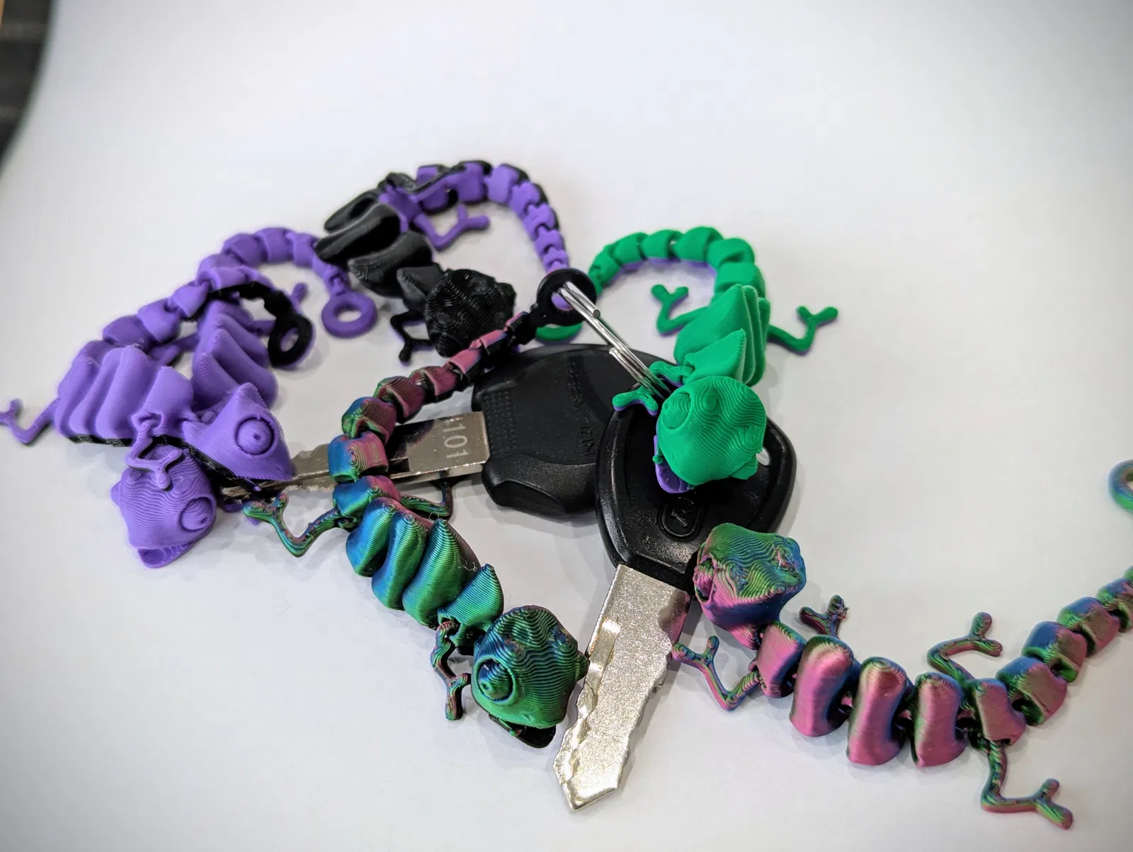Phiên bản móc khóa của Articulated Chameleon từ McGybeer. Chỉ tốn khoảng 3g filament, rất tiện để tận dụng phần cuối cuộn, in ổn và vẫn giữ các khớp chuyển động tốt (ít nhất trên Mark 4).