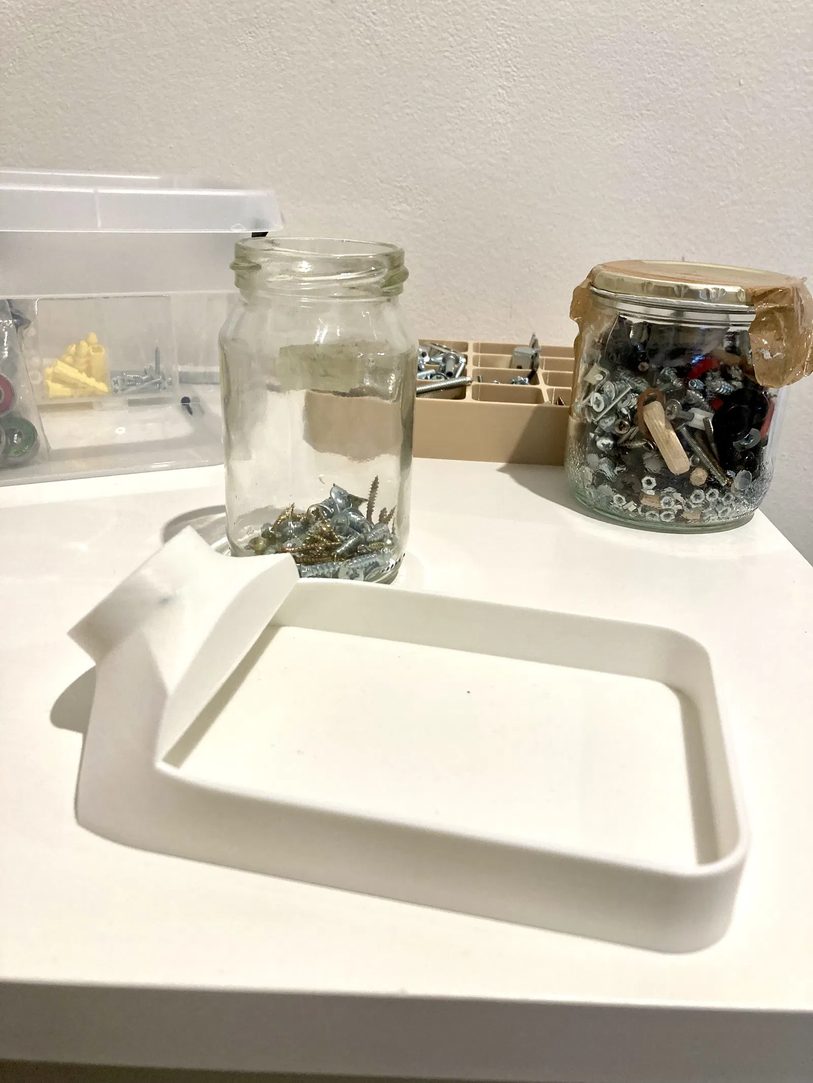 Organizer in 3D tiện dụng để đổ ốc vít/đồ nhỏ ra lựa cho dễ, rồi dùng phễu rót lại vào hũ nhanh gọn. Tương thích miệng hũ 40 mm và 60 mm, thiết kế gọn, in nhanh, không cần support.