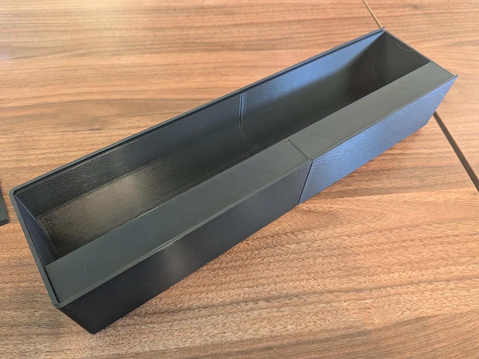 Máy MK3S+ của mình không in vừa hộp plastic wrap theo file gốc, nên mình phải tách ra. Mình thêm keying ở những chỗ có thể làm đủ chắc để cầm nắm, lấy ra khỏi ngăn kéo mà không lo bị bung. Khuyên dùng supports ở khu vực in keys, rồi chà nhám nhẹ vì phần keying khá khít.