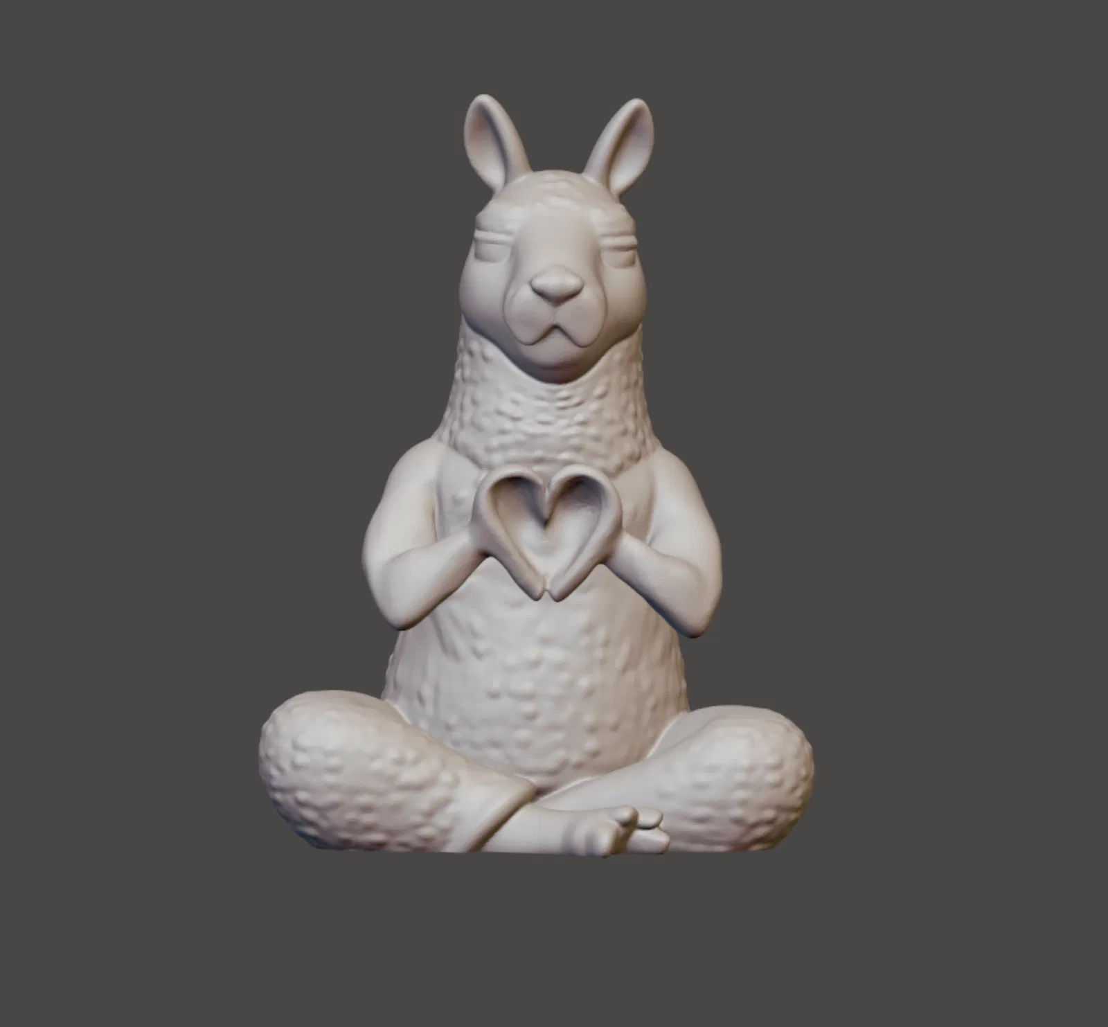 Chào cả nhà, hôm nay em xin giới thiệu đến mọi người một mẫu tượng 3D cực kỳ độc đáo và ý nghĩa: Tượng Alpaca Love. Đúng như tên gọi, mẫu tượng này khắc họa hình ảnh một chú alpaca trong tư thế thiền định, hai tay chắp lại tạo thành hình trái tim ngay trước ngực. Vẻ mặt chú alpaca toát lên sự thanh tịnh, an nhiên, như đang lan tỏa thông điệp yêu thương đến mọi người xung quanh.