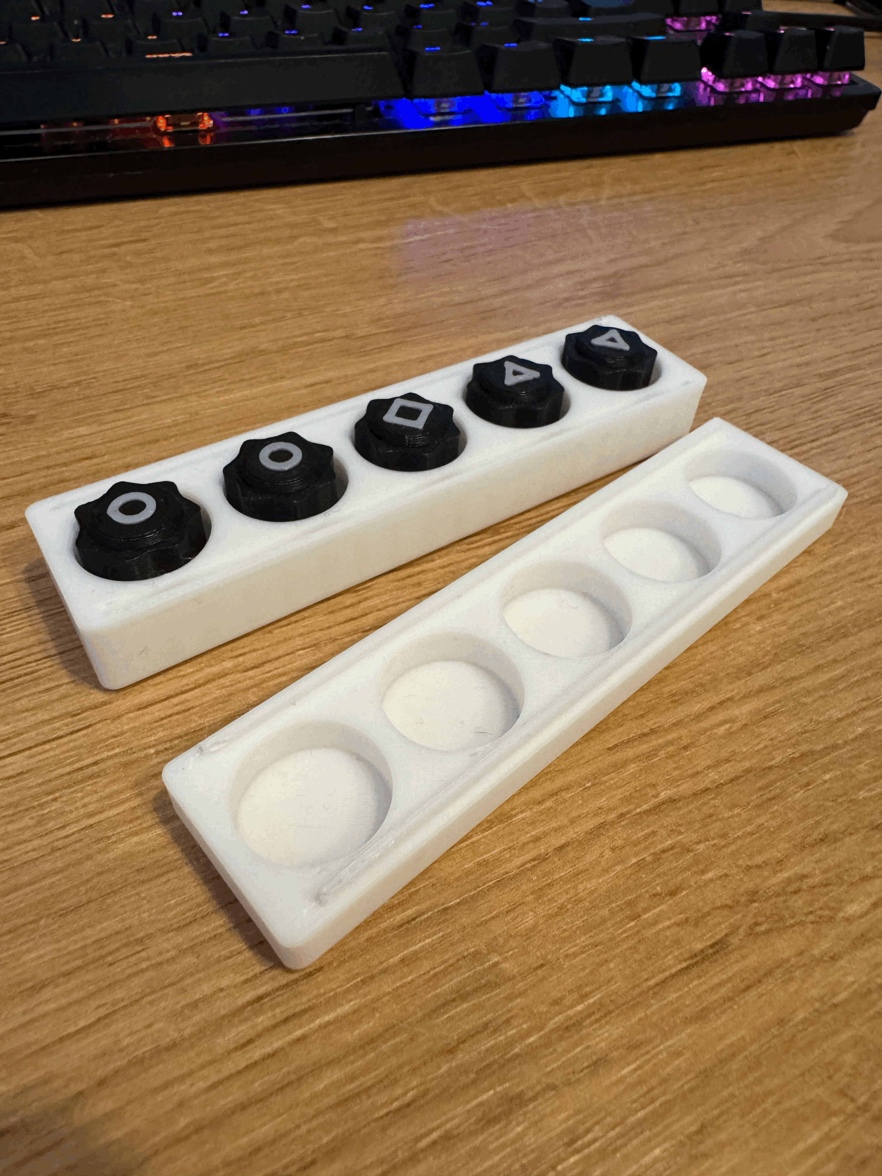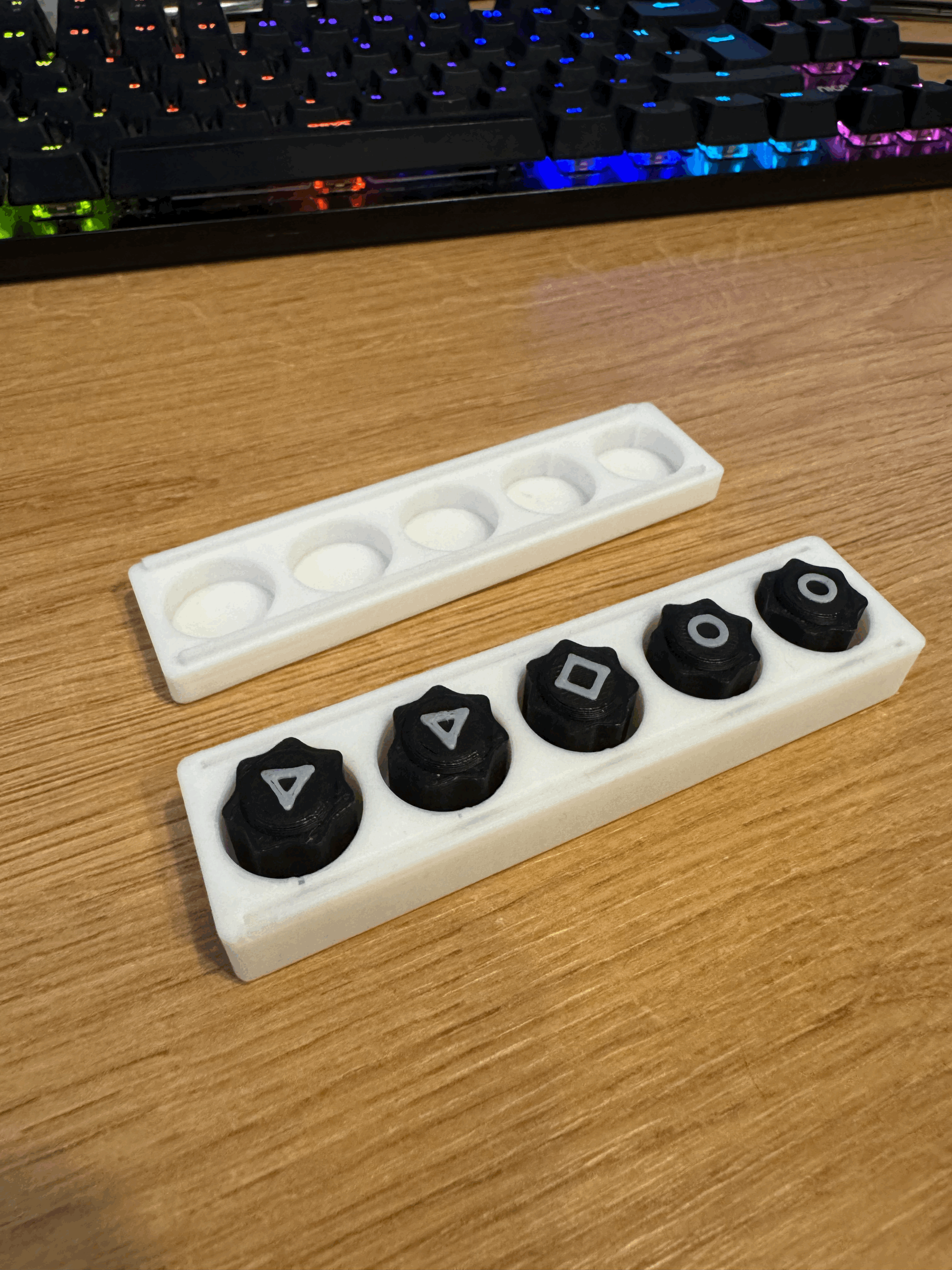 Mẫu bi Gong Gi trong Squid Game S2 kèm hộp đựng. Dễ in: in riêng nắp và hộp không cần supports; các viên bi nên scale 80–85% và bật supports chỉ trên build plate (basic supports).