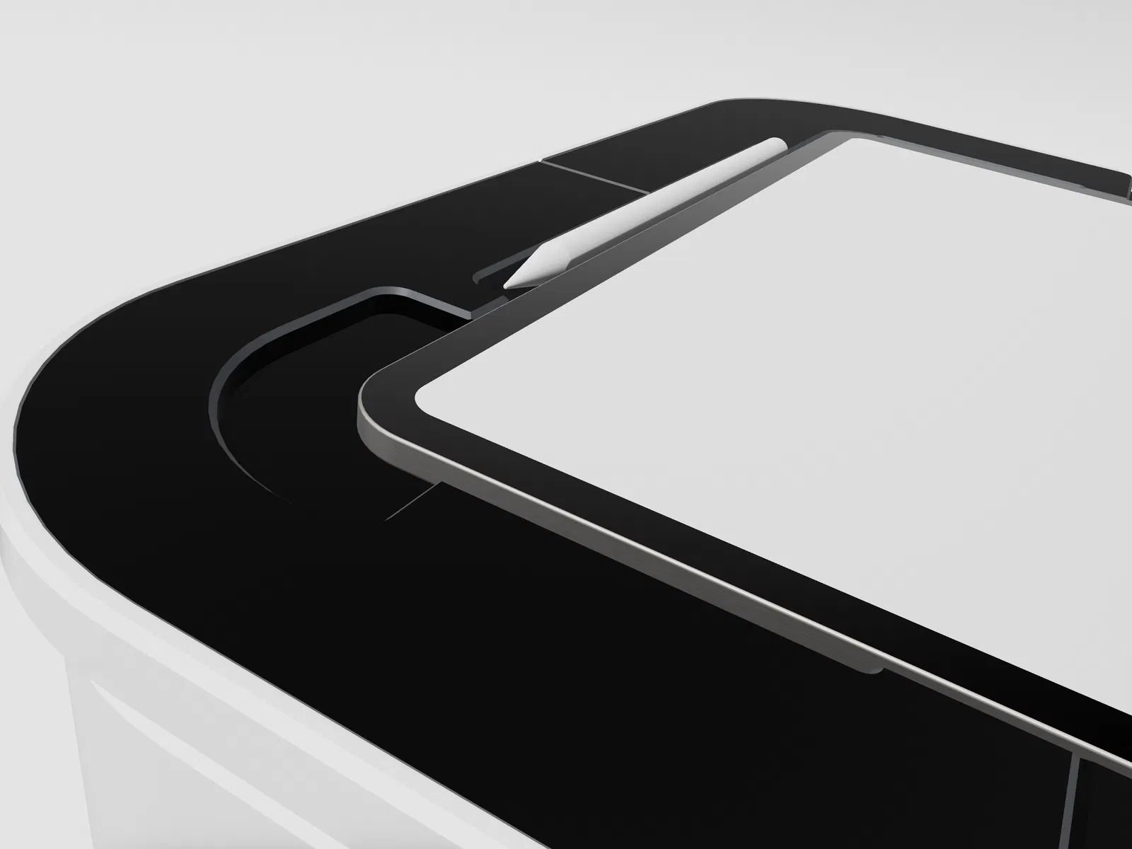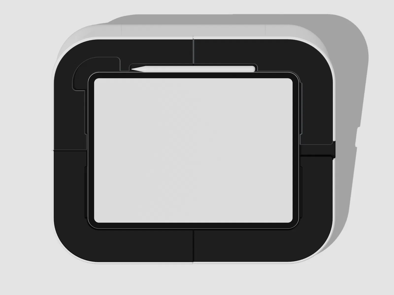 Viền bezel lớn quanh iPad giúp vẽ sát mép thoải mái và chính xác hơn nhiều. Có các khe nhỏ cho loa, Apple Pencil vẫn sạc được, iPad vẫn sạc được và tất cả nút bấm đều thao tác được. iPad không bị khóa cứng, chỉ nhờ trọng lực và độ fit gần như hoàn hảo để giữ tại chỗ; tuy nhiên bạn không thể cầm frame theo chiều dọc vì iPad sẽ rơi ra. Bạn cũng có thể nhấc iPad hoặc Pencil lên rất dễ. Nó giống Sketchboard Pro, nhưng gọn hơn, đỡ cồng kềnh.