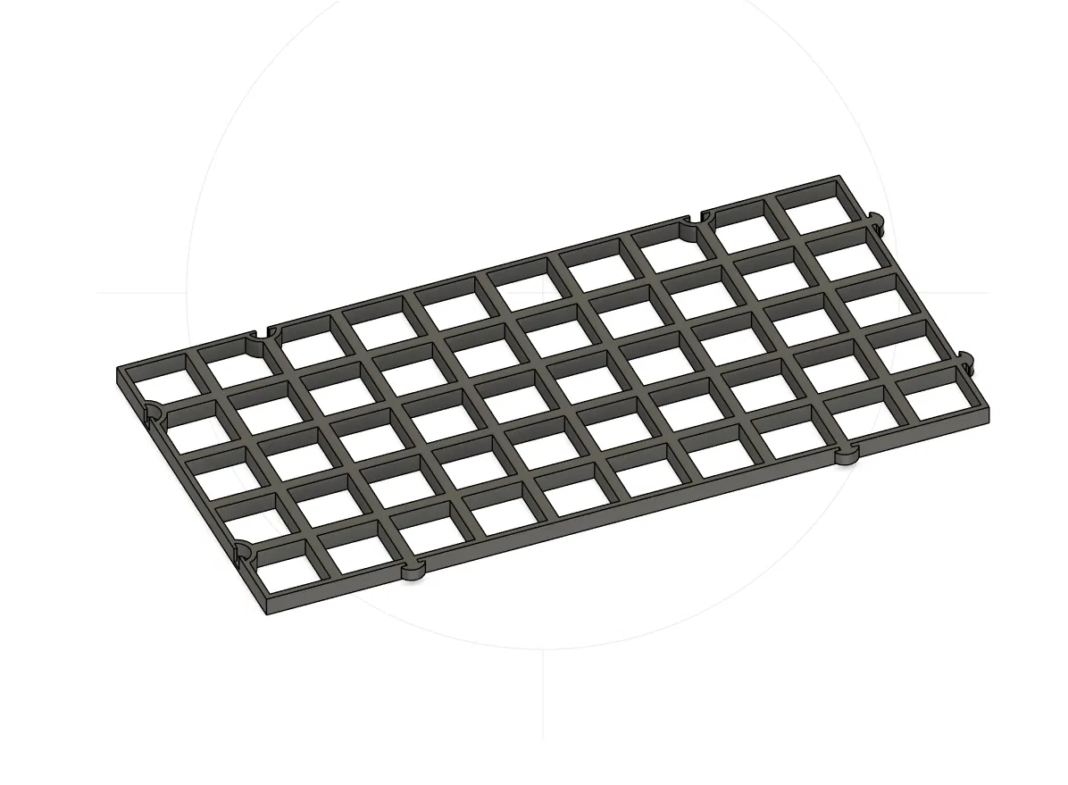 Vỉ trứng (egg crate) modular cho san hô, lỗ 16mm, khoảng hở 3mm, lắp khít rất chuẩn. In với nozzle 0,4mm, layer height 0,2, infill 100%, không cần supports. Khi in, đặt sao cho các chốt (pins) bên ngoài nằm úp xuống mặt bàn in. Mình khuyên dùng PETG.