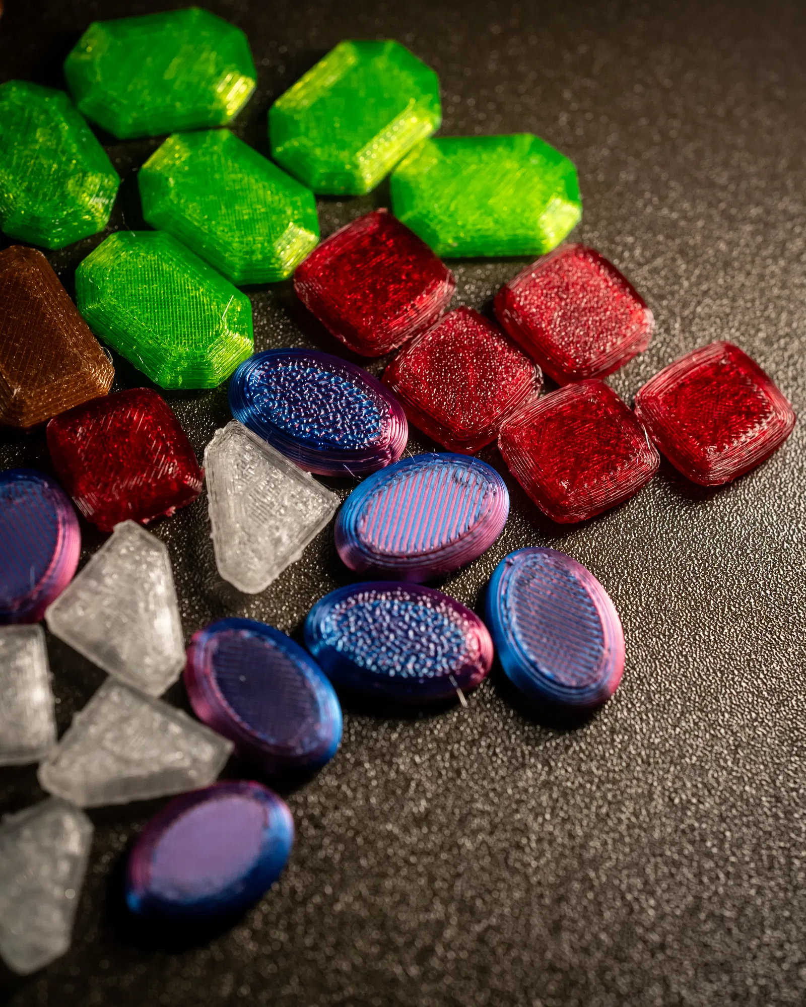 Token Splendor được làm lại dạng 2 mặt để nhấc lên dễ hơn, đã mirror và tối ưu cho in sạch, ổn định. Test thành công trên Prusa Mini/Mini+ và Bambu Lab A1. Không gồm token joker; token vàng gợi ý dùng Wyrmspan.