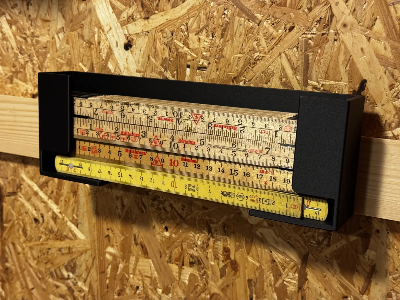 Đây là một giá/ống nhả thước gấp (folding ruler) với nhiều lựa chọn lắp đặt linh hoạt. Nó có thể chứa khoảng 5 cây thước dài 2m. Nếu bạn cần kích thước khác thì cứ cho mình biết để mình cân nhắc làm thêm.