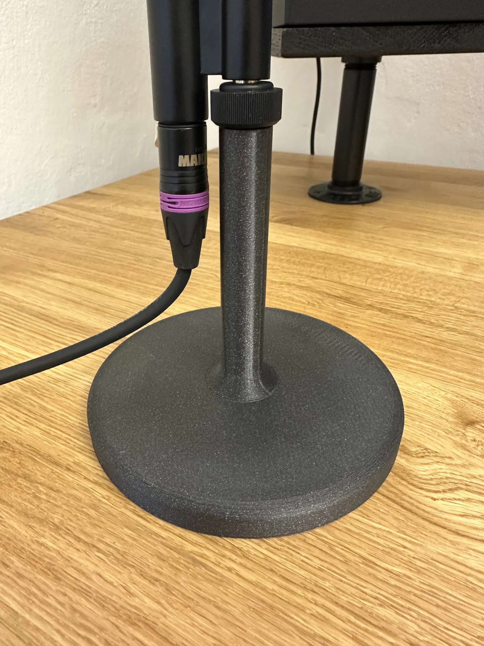 Mẫu chân micro in 3D chắc chắn, thiết kế cho Shure SM7B/SM7dB và các micro dùng chung ren 5/8”-27 (hoặc adaptor). Đế 75mm, cao 135mm, in PLA/PETG/ABS, không cần supports, infill 35%+.