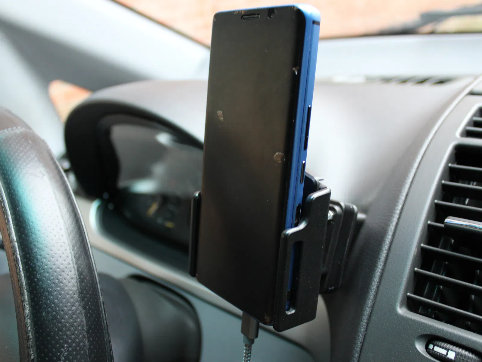 Adapter này thay thế hoàn toàn cái kẹp điện thoại zin nhìn kém đẹp, nhưng vẫn tận dụng ngàm/giá bắt nguyên bản của xe để cho độ khít và độ giữ rất chắc.